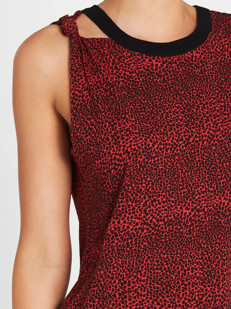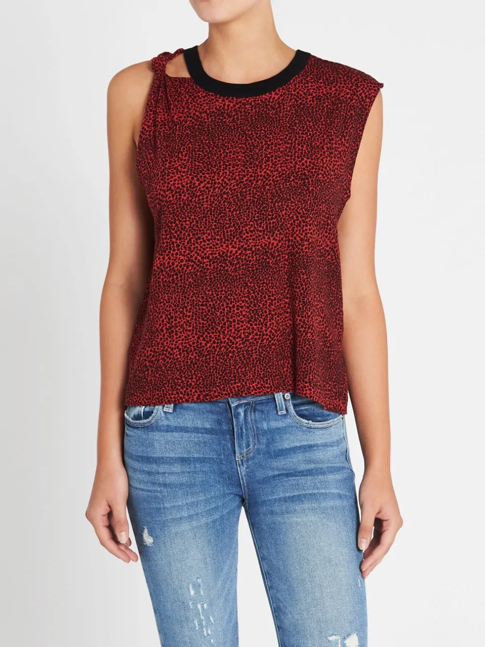 Elevate your off duty style with the Current/Elliott Sonic Tank in Mini Red Leopard. Constructed from a leopard print red cotton this easy to wear tank has a drapey cut and features an asymmetrical knotted detail on the shoulder and a contrasting black neckline.