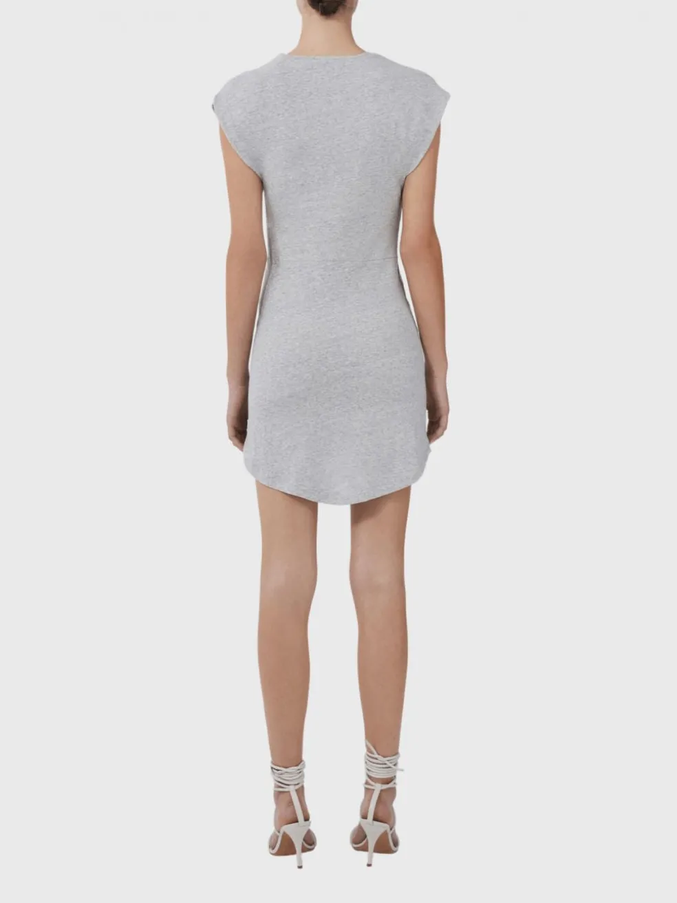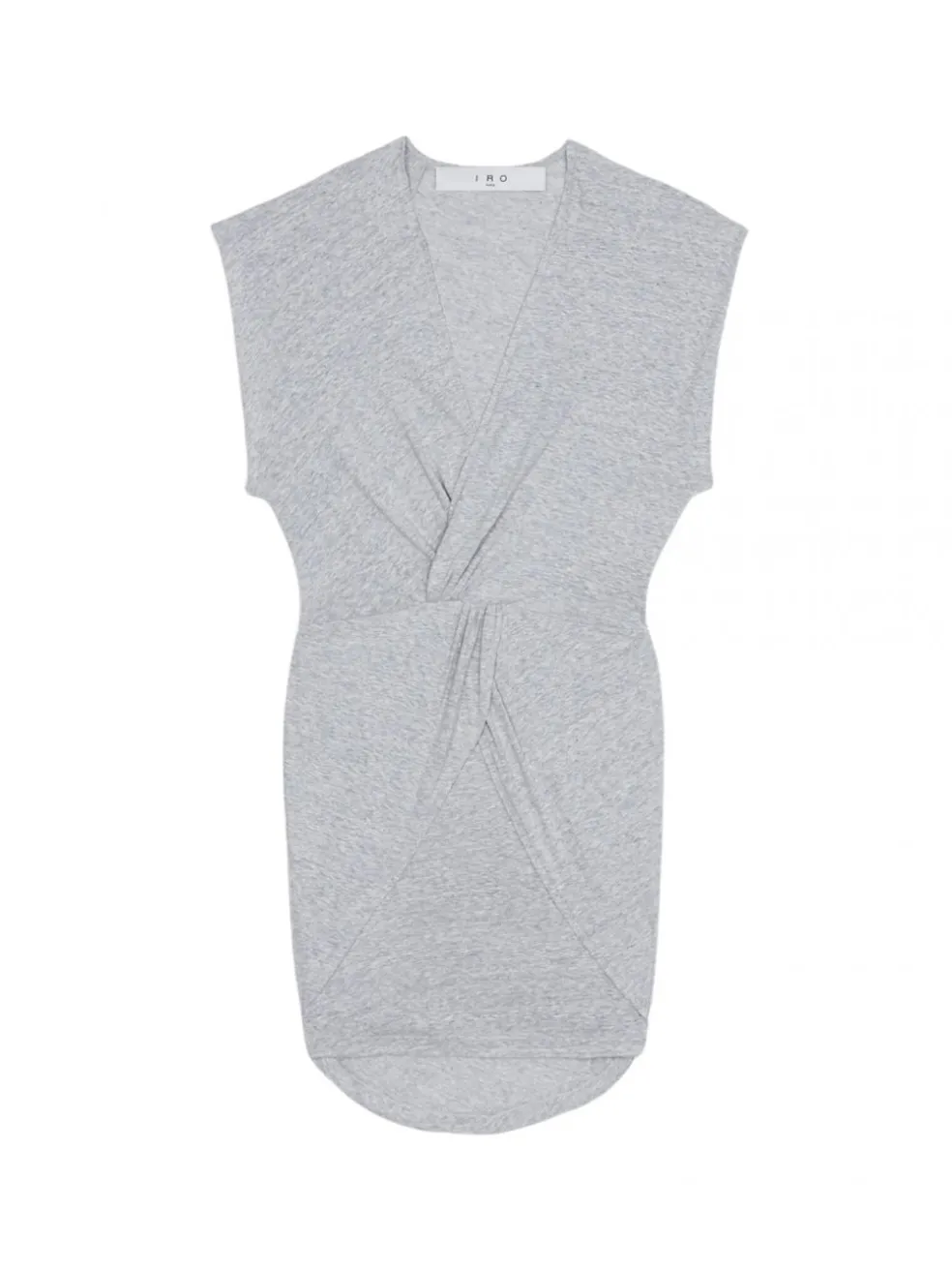This mini dress in a mixed grey jersey is the perfect casual piece for your everyday wardrobe. Made from a combination of recycled and organic cotton, it will keep you cool while looking cool. From Paris fashion house IRO the fitted dress features a v neck, slight cap sleeves and artfully draped dress features.