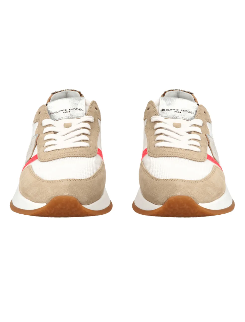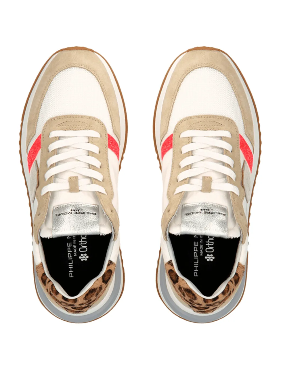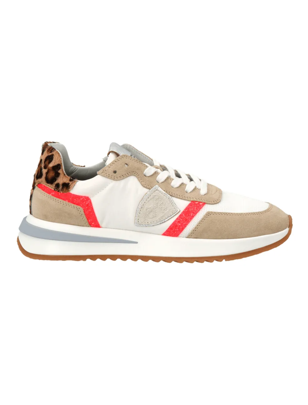 Looking for a unique and eye-catching sneaker to elevate your style game? Look no further than the Philippe Model Sneaker Running Tropez 2.1 . These Women’s Designer Sneakers are hand made in Italy, they feature a nylon upper contrasted with a calf skin cheetah print detail on the heel tab, and the glitter fabric accents that will turn heads wherever you go.