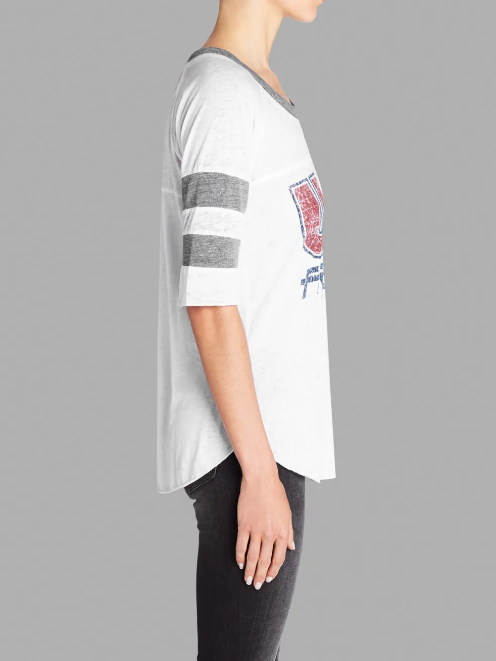 Made in the USA, Chaser’s ultra comfy round necked Freedom Top in White is patriotically pretty in red, white and blue.