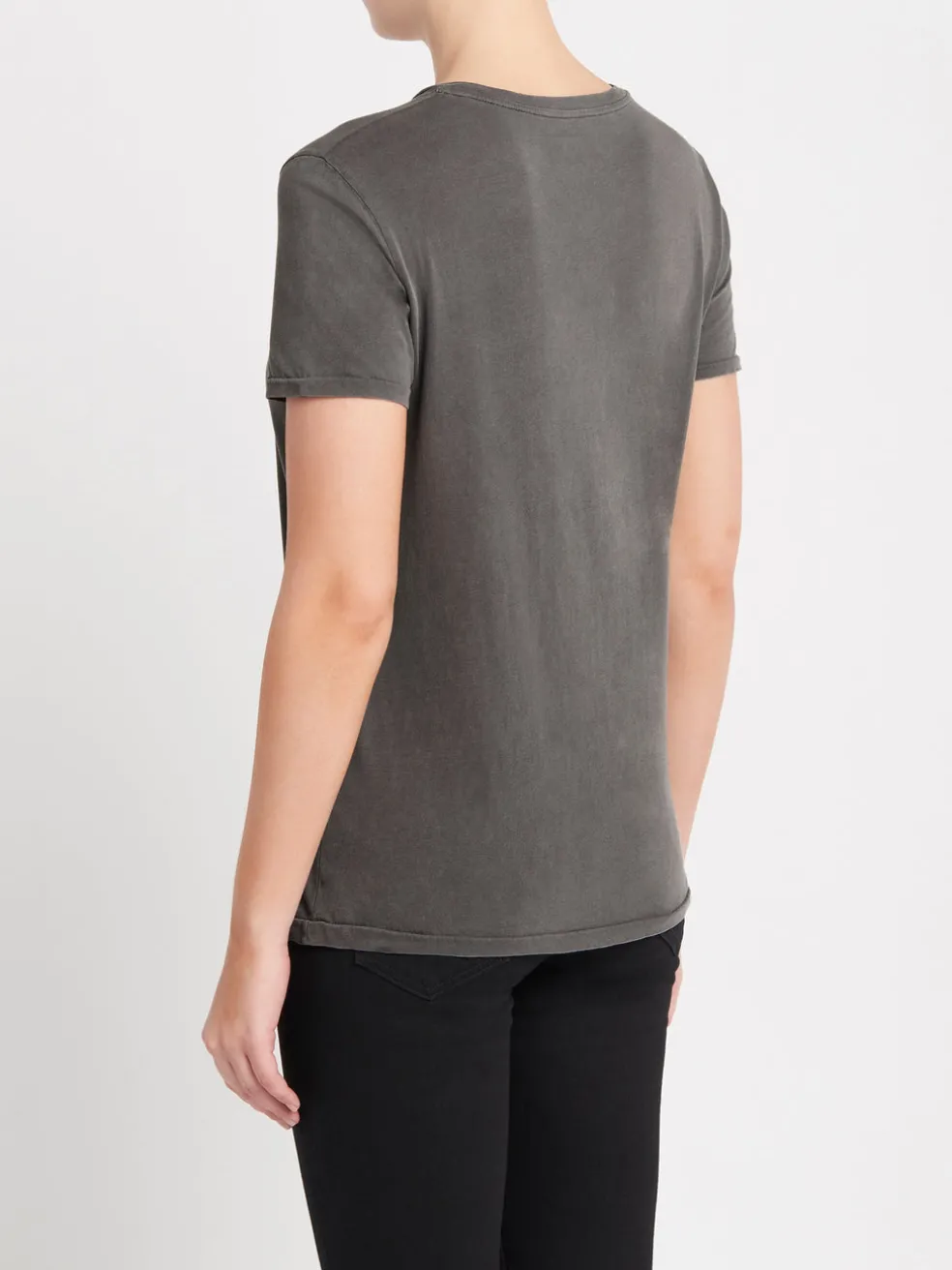 Elevate your everyday wardrobe mix with the American Vintage Vegiflower T-Shirt in Metal. Constructed from 100% Organic Cotton this Round Collar Short Sleeve T-Shirt teams perfectly with your favourite denim or team back with your favourite lounge pant.