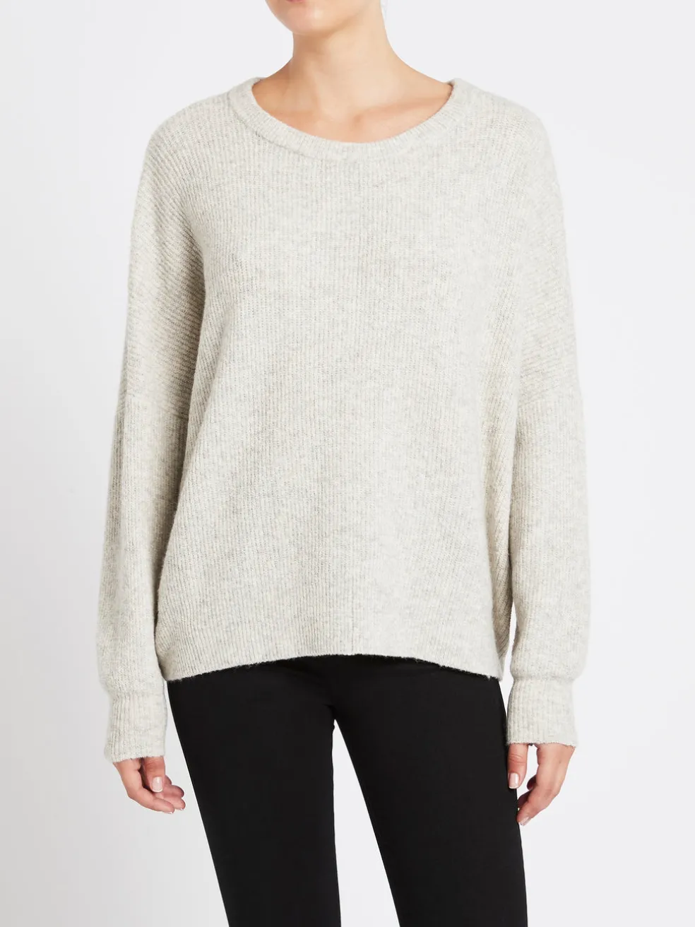 The perfect knit of the season is here with the American Vintage Wopy Sweater in Mineral Melange. Constructed from a knitted blended fabric this super cosy piece features a round rib knit neckline, oversize fit and drop shoulders. Tuck into a black slip style skirt for easy winter style or wear with your favourite jeans for no fuss weekend vibes.