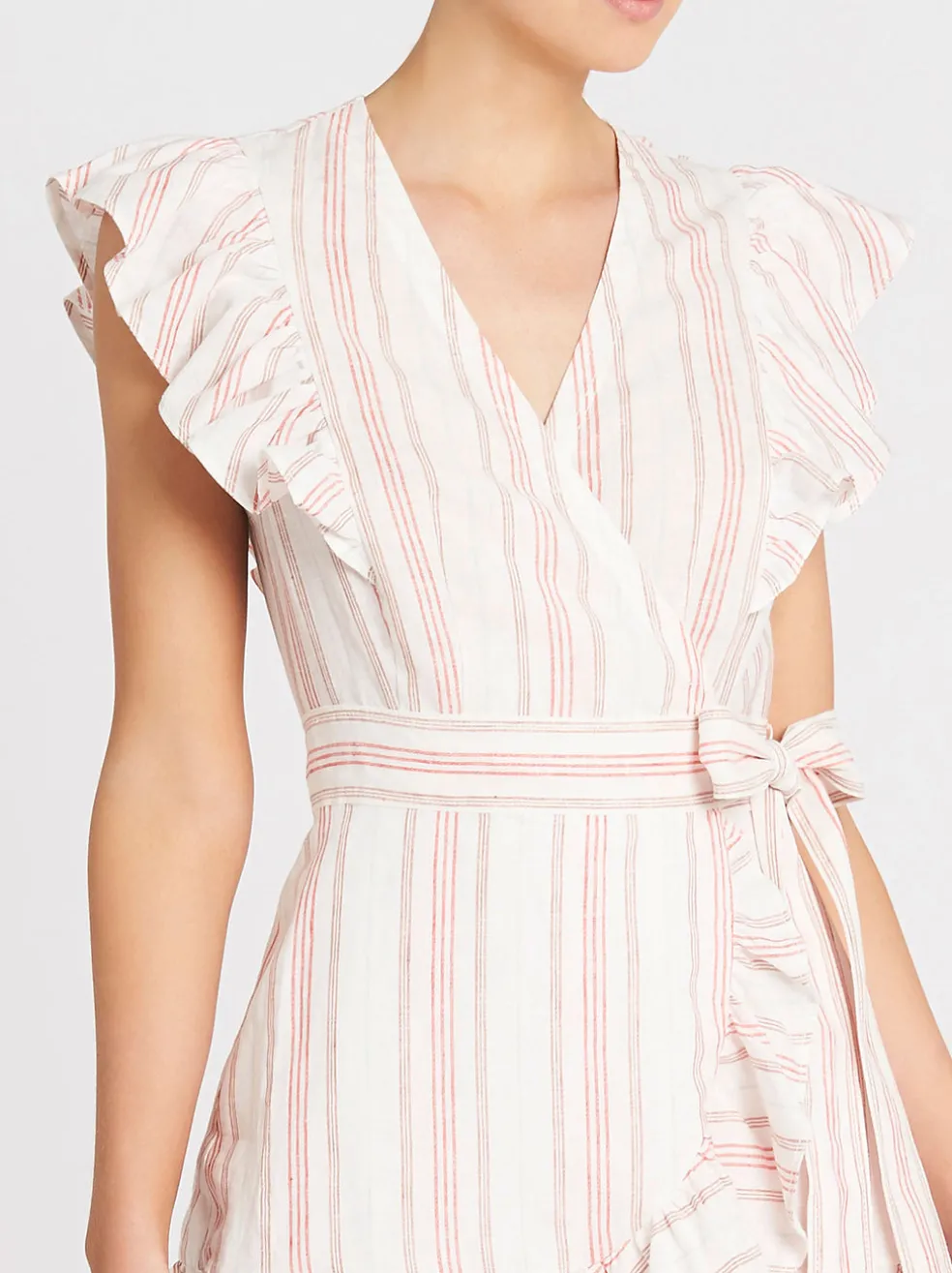 Spring has sprung and the Rebecca Taylor Yarn Dyed Stripe Wrap Dress in Snow is the perfect piece to welcome the season in style. Constructed from a lightweight linen this piece features a V-neckline with twist detailing at the bust, ruffling at the sleeve head and a centre front placket with button closure down the skirt with a slit finish.
