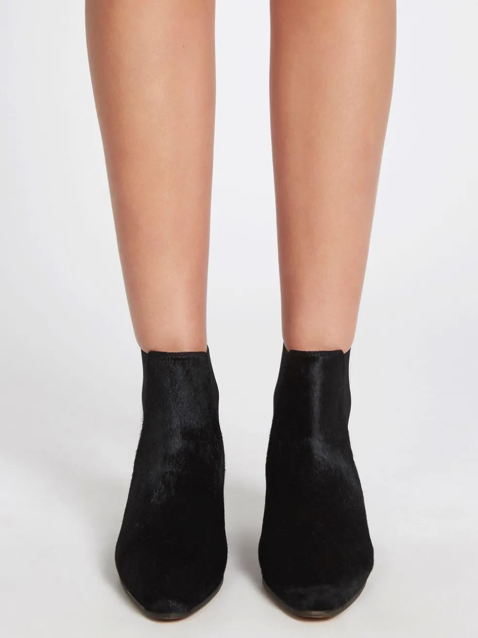 The IRO Yvany Boot is a stunning must have classic that will easily transition into any wardrobe. Constructed from black calf hair and leather, these Chelsea style boots feature an elasticated side gusset, stacked wooden heel and pointed toe.