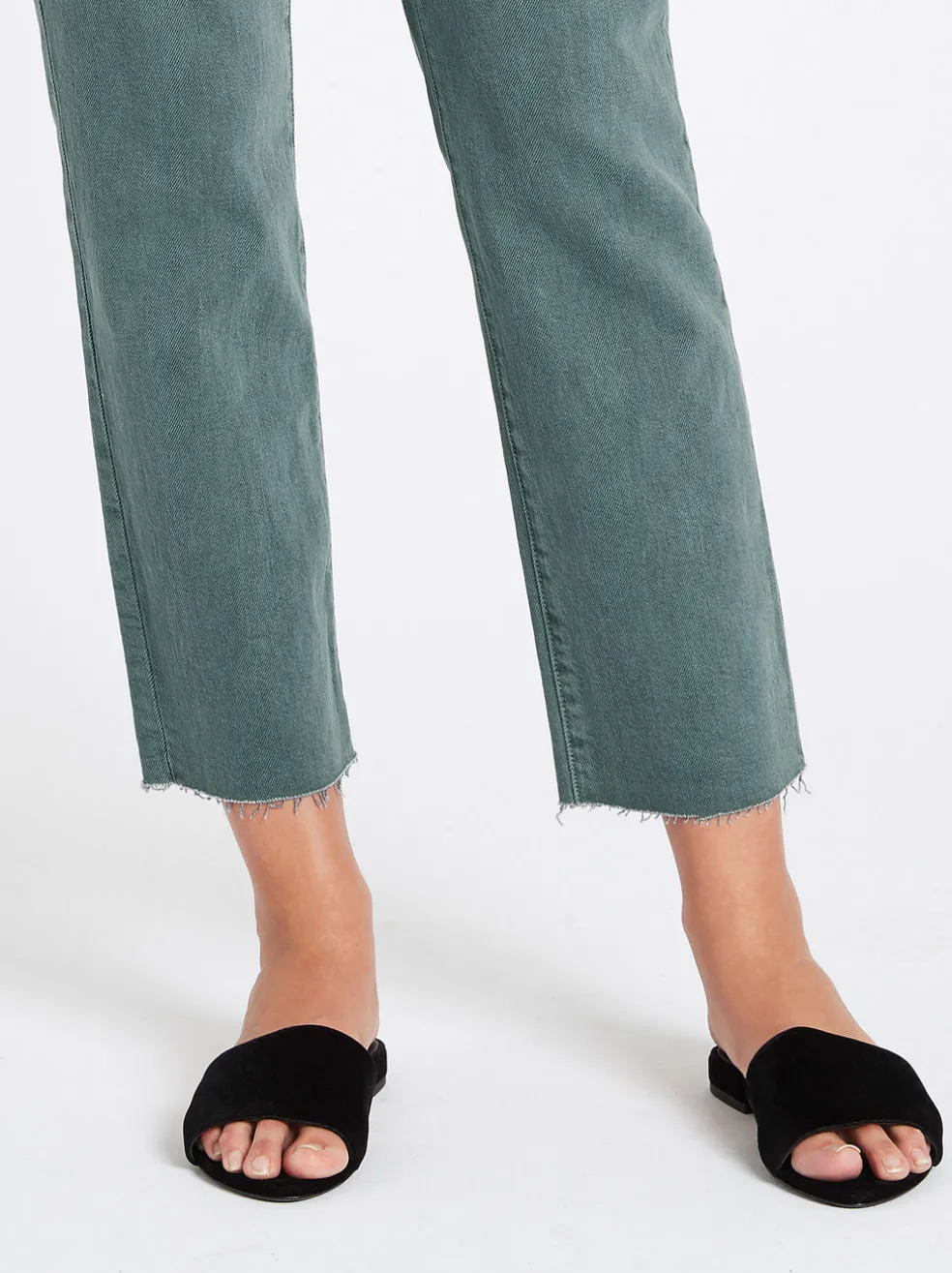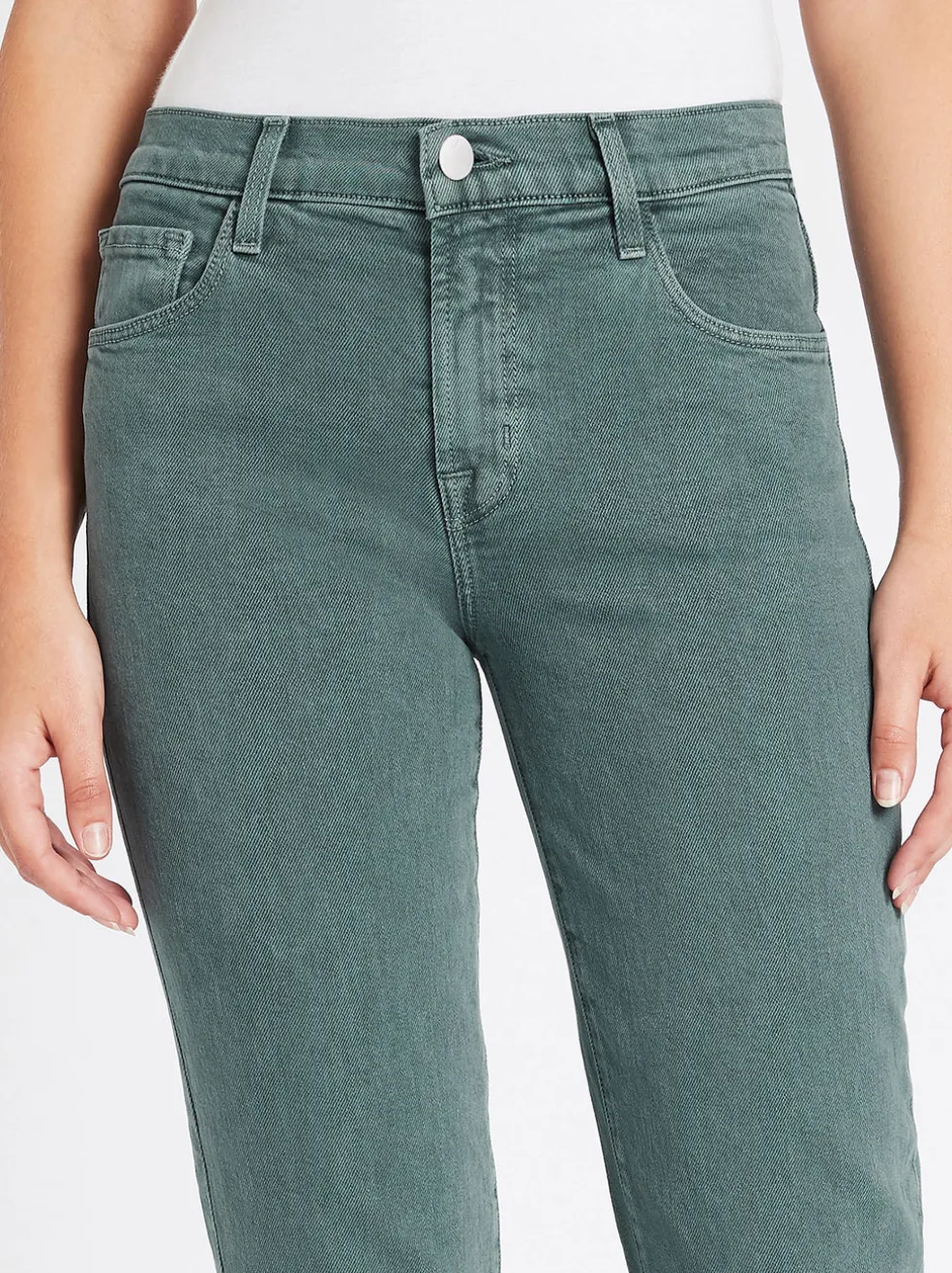J brand deliver and update to the much loved 811 skinny fit jean with the Adele Mid Rise Straight Jean in Dakota Distress that you’ll love to wear to work and beyond. Constructed from comfort stretch denim, these mid rise straight jeans feature a stunning faded green-grey wash with a classic 5 pocket design and is finished with silver metal hardware detailing. Pair with a strong white cotton shirt boots and blazer for mid week office attire or team back with a racer back tank for the ultimate off duty look.