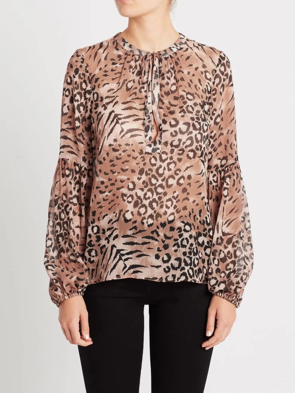 The Paige Beretta Top in Light Hyde / Faded Animal is calling to you. Let your inner animal out with this 100% silk blouse, featuring a flattering v-neck, long-sleeves, and a lightweight fit. Perfect for that big presentation, or the notorious third date. Want the full look? Try the Paige Hoxton Stretch Leather Pant – Meow!
