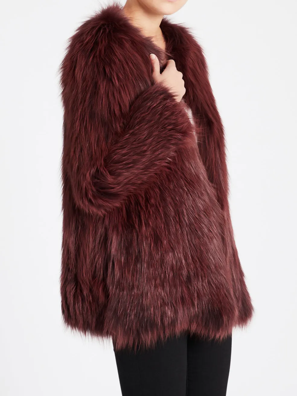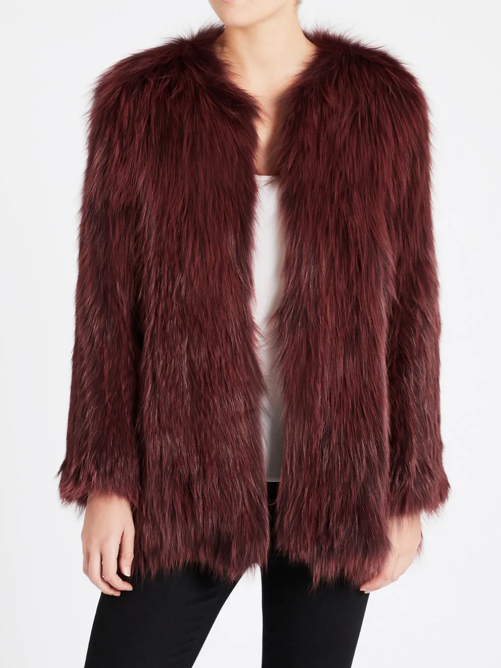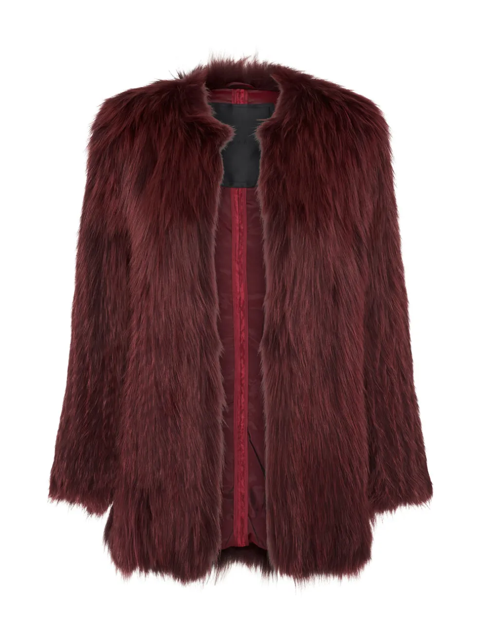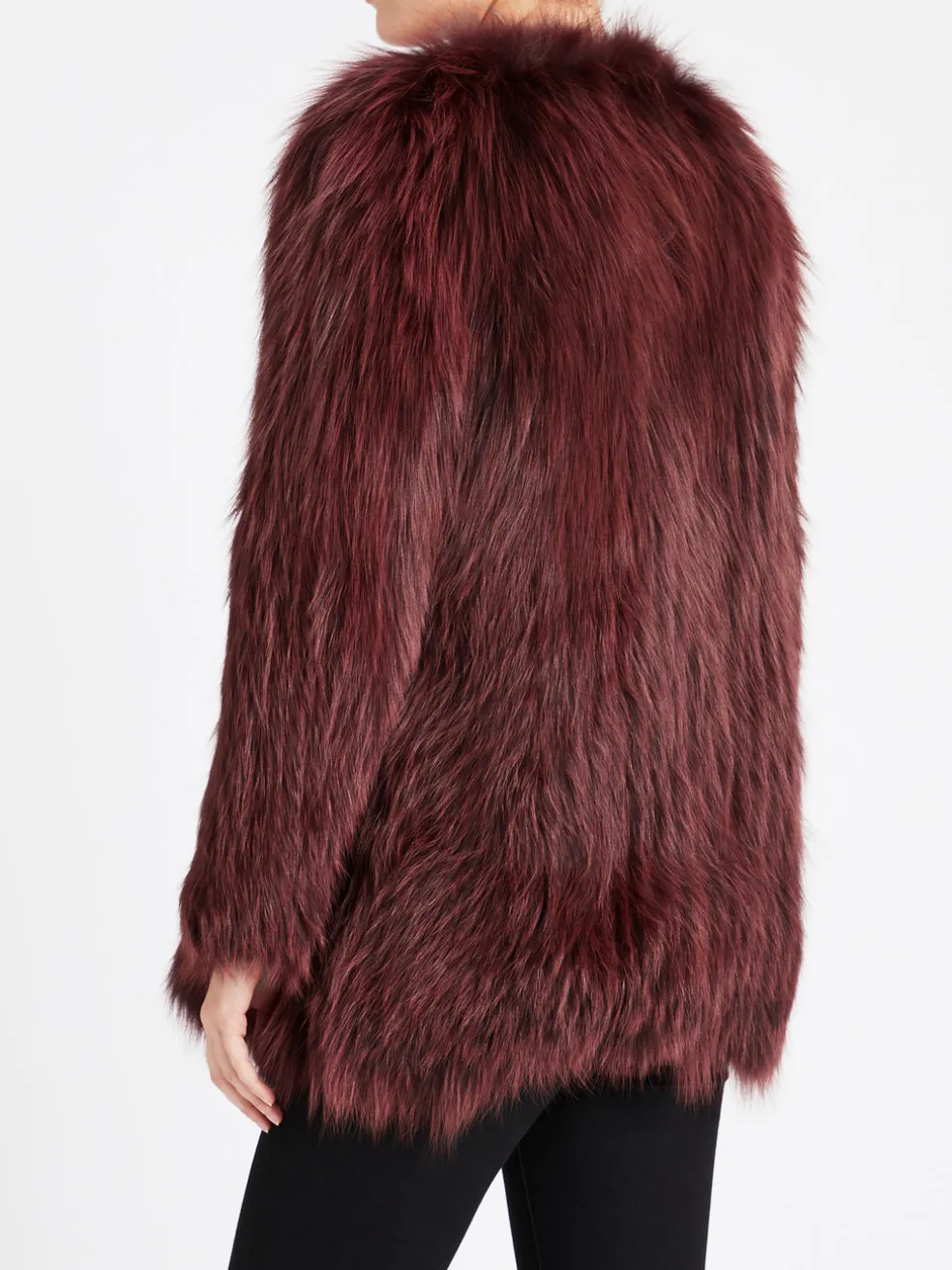 The must have winter fur coat is here. Leave everyone drooling with the H Brand fox fur coat in Mahogany. With side splits, full lining and hook and eye closures the Blair Jacket will keep you looking chic and feeling warm.