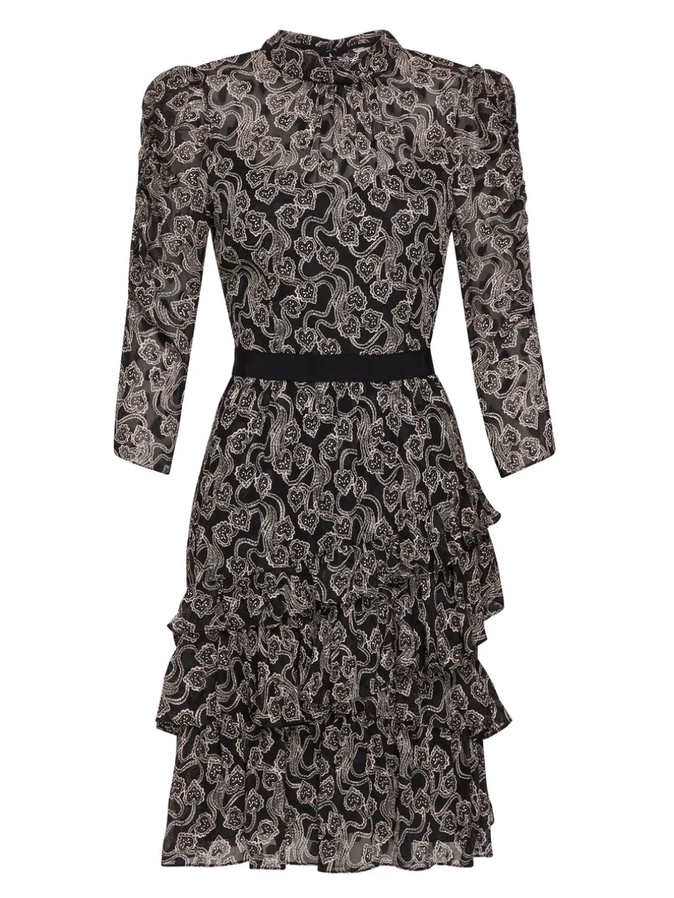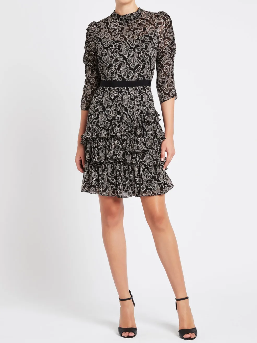 Wear your heart on your sleeve in the Rebecca Taylor Celia Lace Dress in Black Combo. This dress is the ultimate in romance – a defined waist and tiered ruffle skirt create feminine silhouette, and the raised-sleeves are complimented by the the vintage inspired Celia Lace print. Wear to brunch, to work, out for drinks – any opportunity for a meet-cute, and in this dress you’ve got the cute covered!