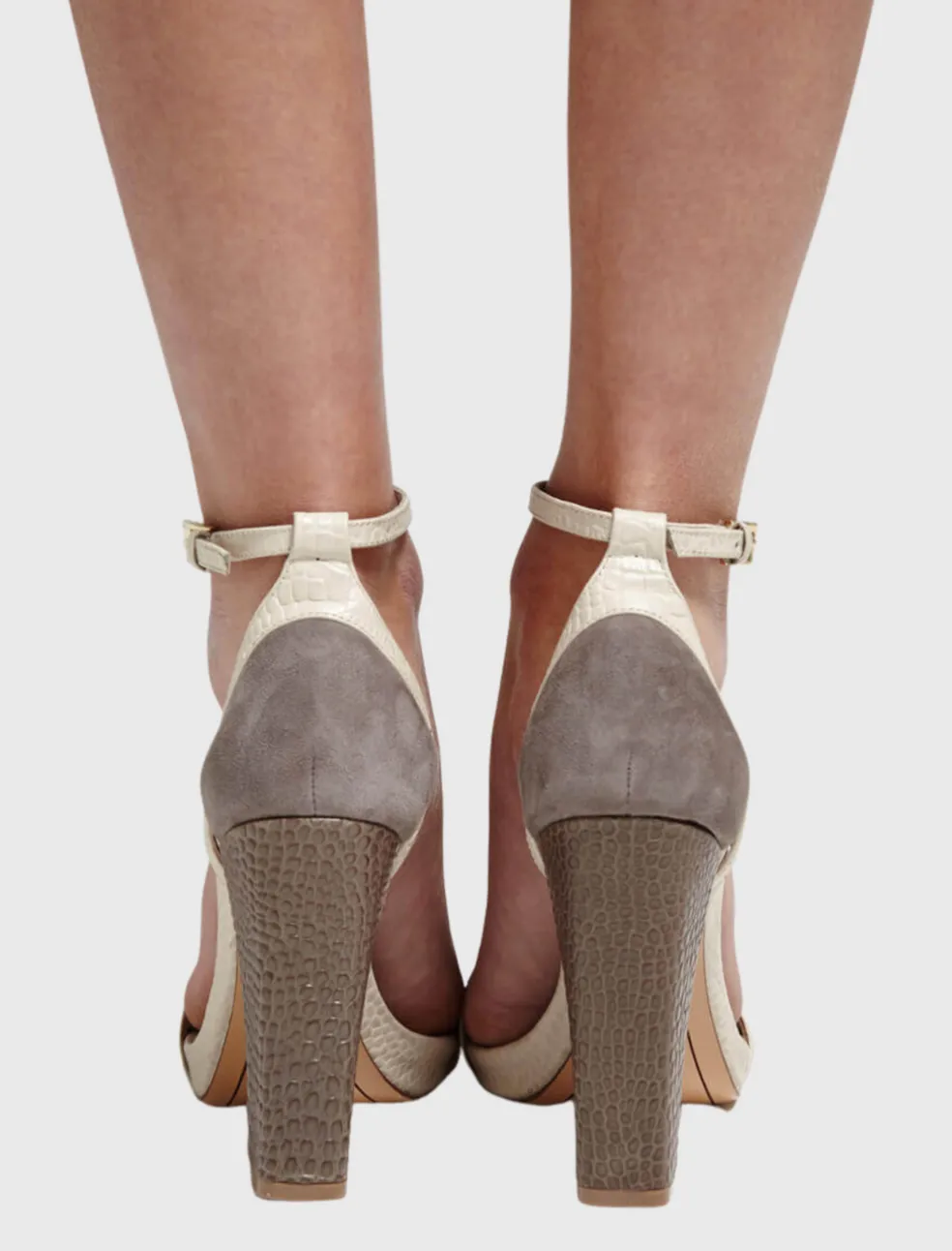 These striking two tone Chase Strappy Sandals from Pour La Victoire are made from a combination of suede and embossed croc leather. Featuring a delicate ankle strap with metallic buckle closure.