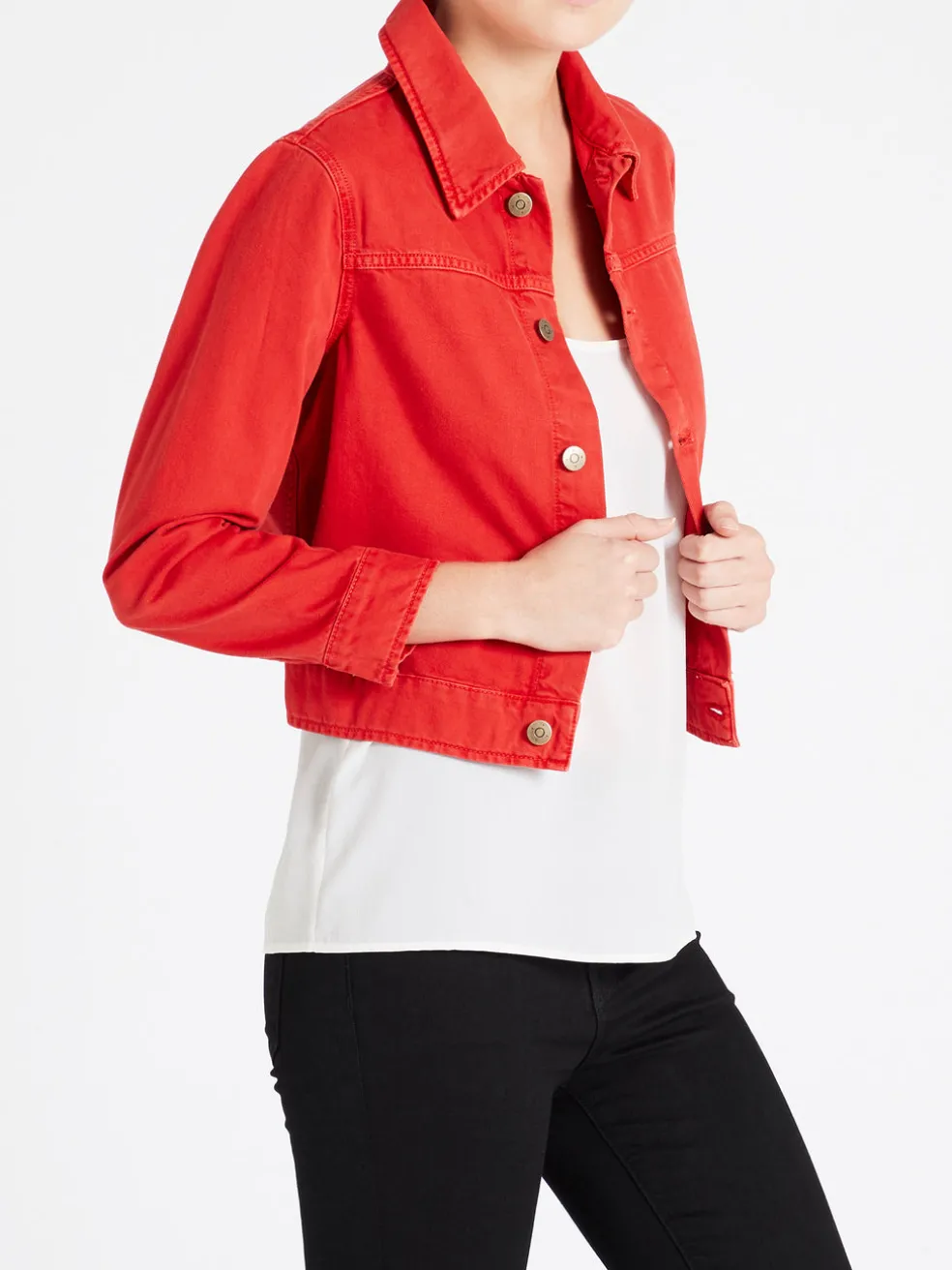 Make a statement with the Daily Jacket by M.i.H Jeans in bold fiery Red. In a cropped and straight shape and constructed from rigid Cotton, the Daily Jacket pairs seamlessly with your favourite pair of high rise jeans and white sneakers for an effortlessly cool weekend look.