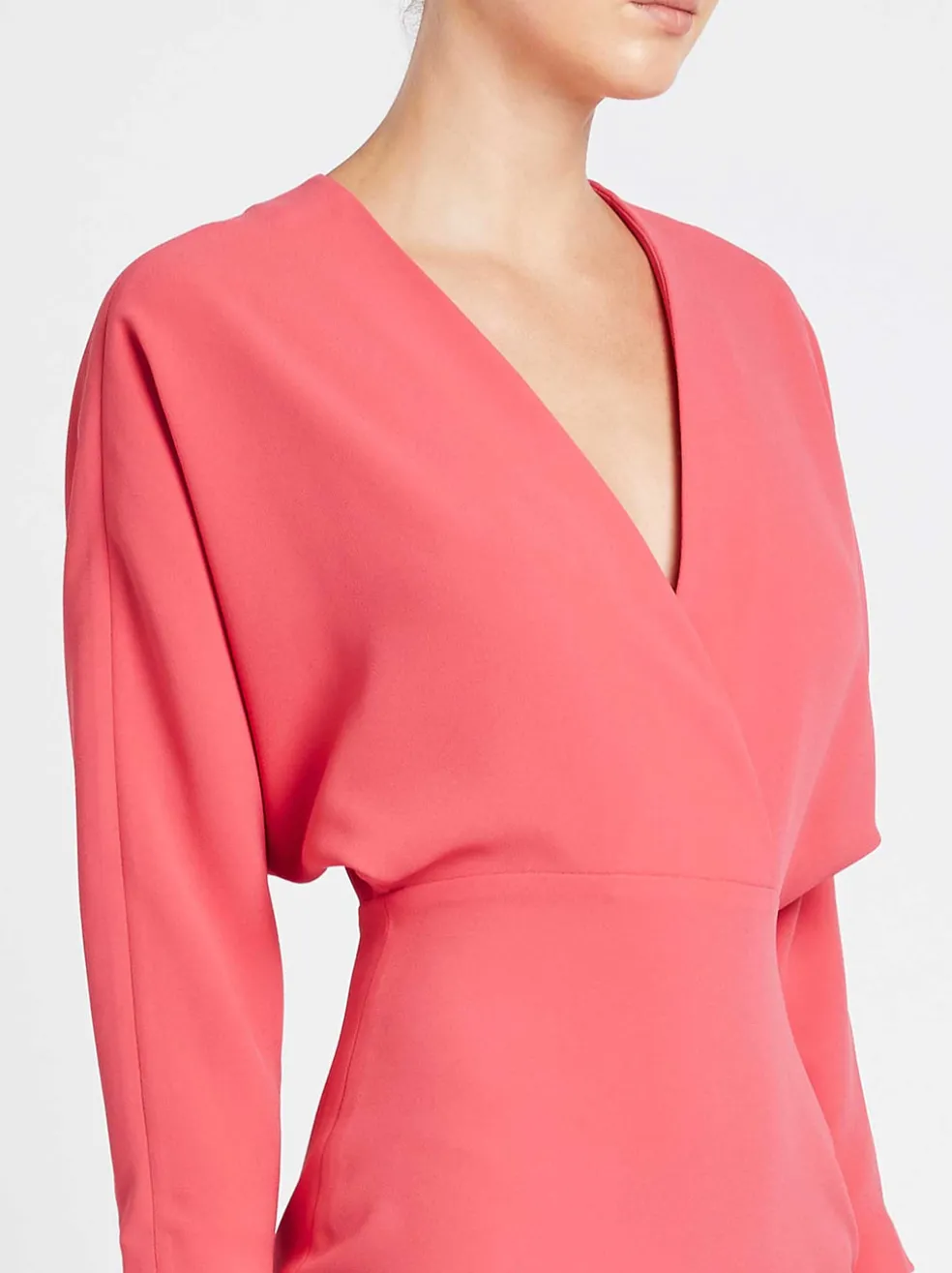 Step it up a notch in the IRO Detina Dress in Hot Coral. This dress is daring – a daring deep v neckline, daring silhouette, and double-daring colour. With a feminine silhouette and bat sleeves, the IRO Detina Dress stands out for all the right reasons.