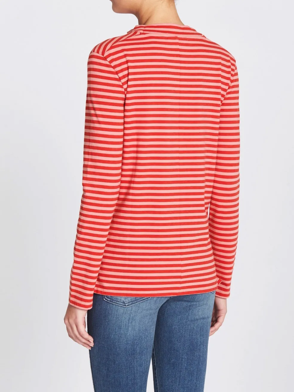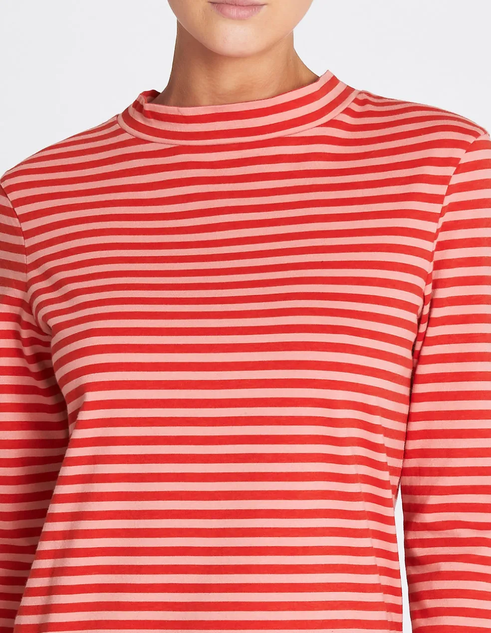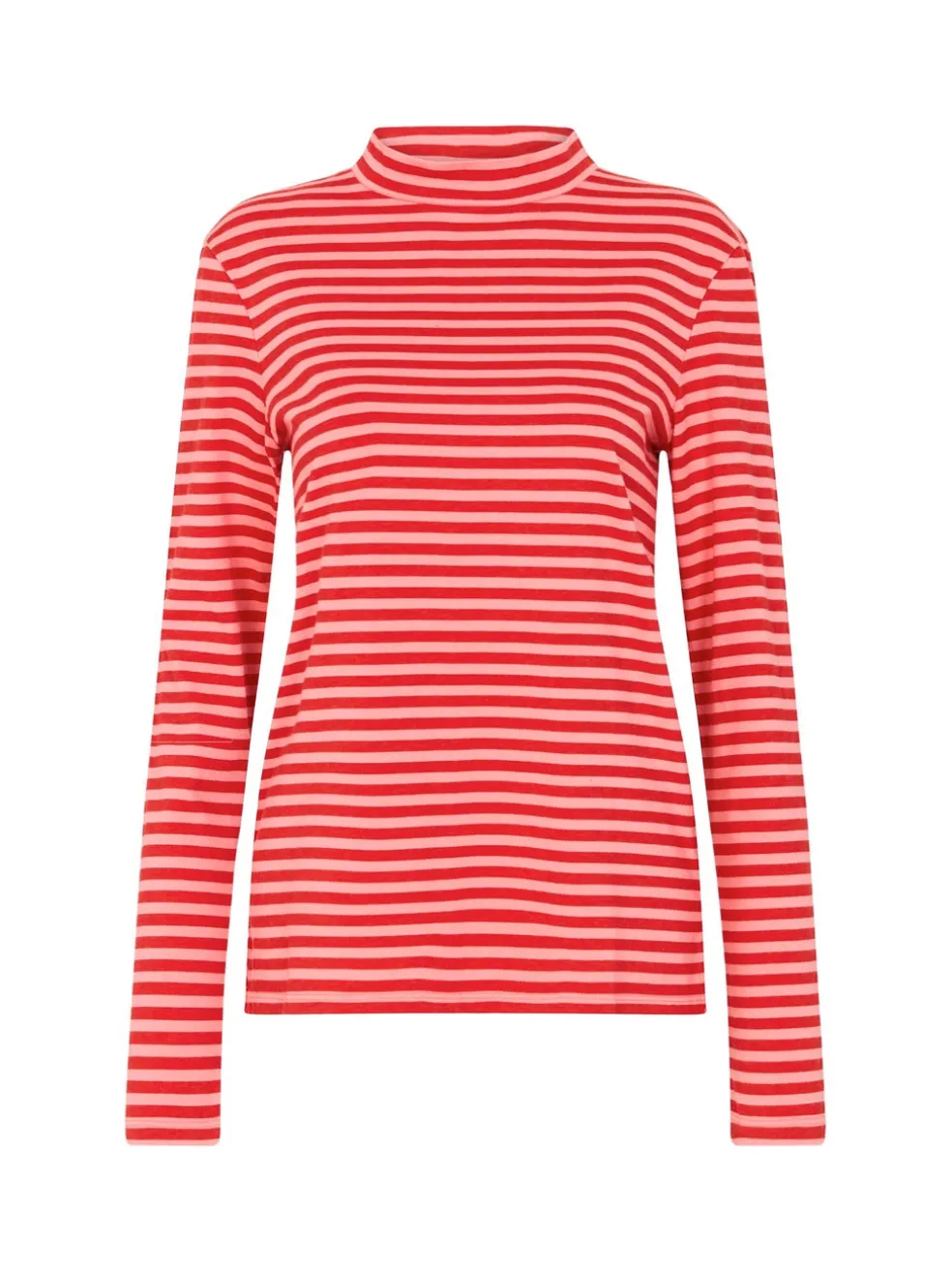 M.i.h Jeans re-works the classic striped top with the Emelie Top in Rosa Pink / Cherry Red. Constructed from 100% cotton this long sleeve piece features a seberg neck and is finished with a staggered side split hem.