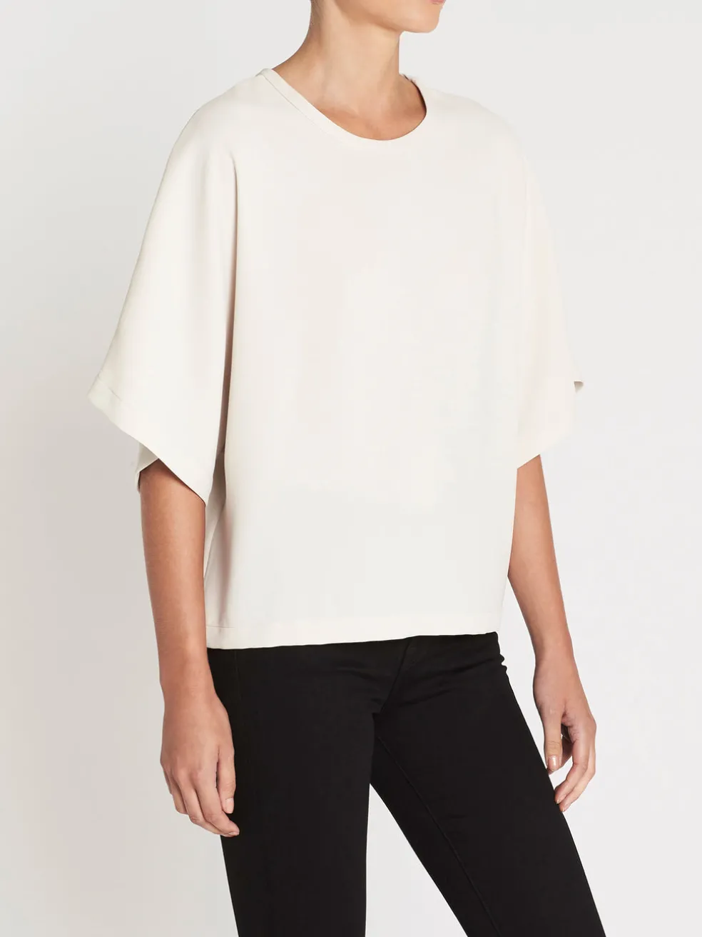 The IRO Fiori Top in Chalk is anything but basic. This Parisian inspired style features a round neckline and batwing sleeves, creating a beautiful drape silhouette. Pair yours with a pencil skirt or rock it with your favourite skinny jeans.