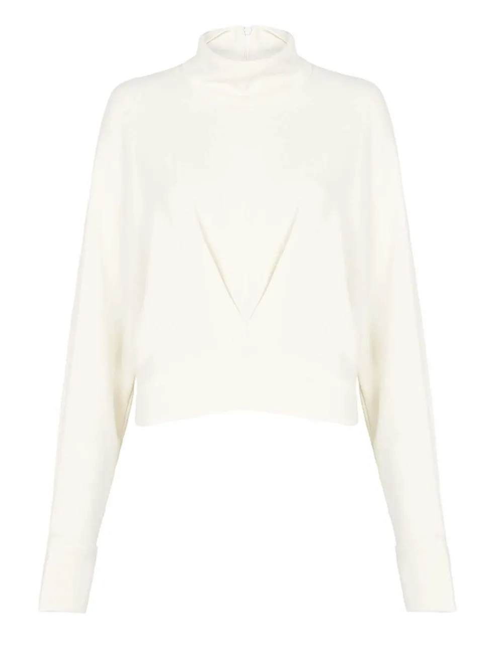 The Greta Top from french fashion brand IRO is the embodiment of luxury sophistication. Crafted from a slouchy silhouette with a high neck for extra coverage, this chic top is finished with a hidden back zip and long dolman sleeves, with a centre pleat to add that extra touch of elegance. Perfect for those who appreciate high-end design.