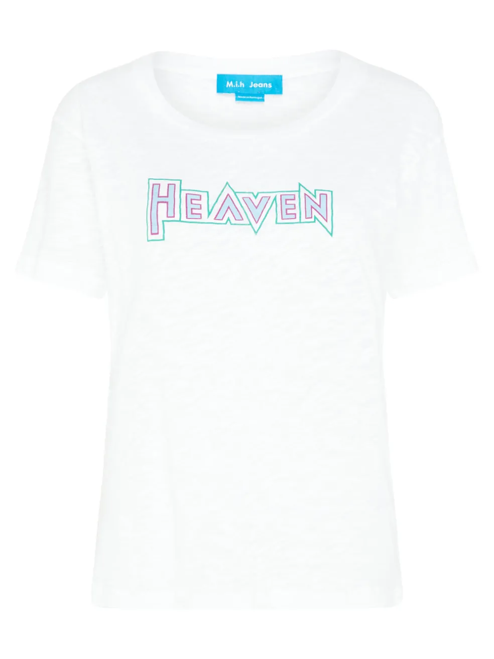 Step up your casual tee collection with the Heaven Tee by M.i.H Jeans. With a retro inspired graphic Heaven print and constructed from a soft cotton, this M.i.H tee pairs perfectly with your favourite pair of jeans and white chunky sneakers.