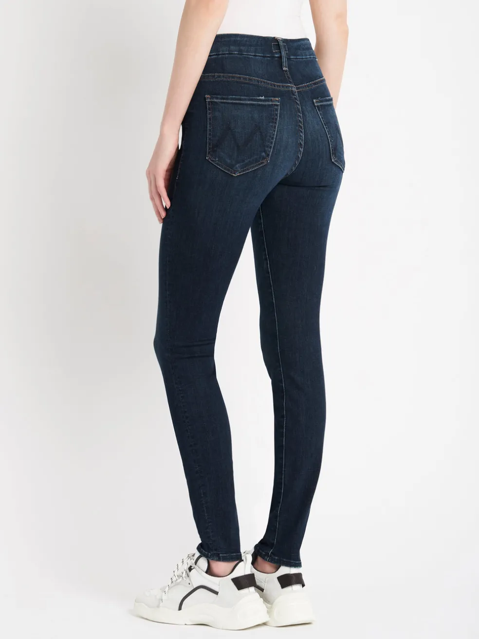 This is it – Mother Denim’s High Waisted Looker Jean is the most classic high waisted skinny Jean on the market. Made in California this jean is a cult favourite loved the world over for it’s butter soft fabric and flattering cut. A full length skinny jean with a clean hem the wash “Teaming Up” is the perfect dark denim hue. Finished with some light whiskering across the thighs and a little fading to great that worn in look these jeans have copper toned hardware and the classic subtle M pocket embroidery.