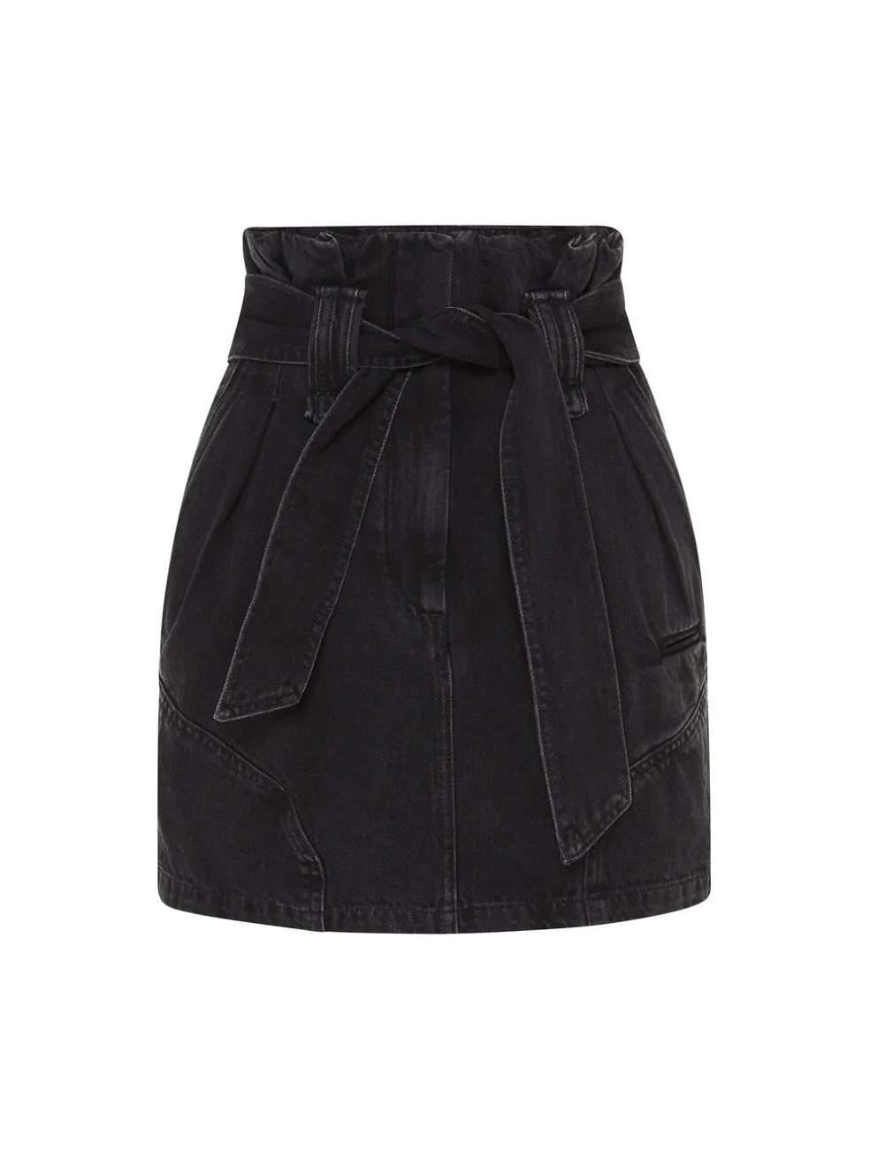 The Hovy Skirt by IRO in Black Denim is an easy addition to your warm weather wardrobe. Constructed from a structured cotton this mini skirt features a gathered waistband with a tie belt and side pockets.
