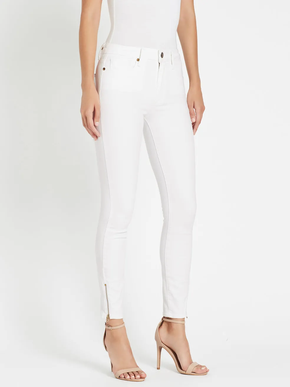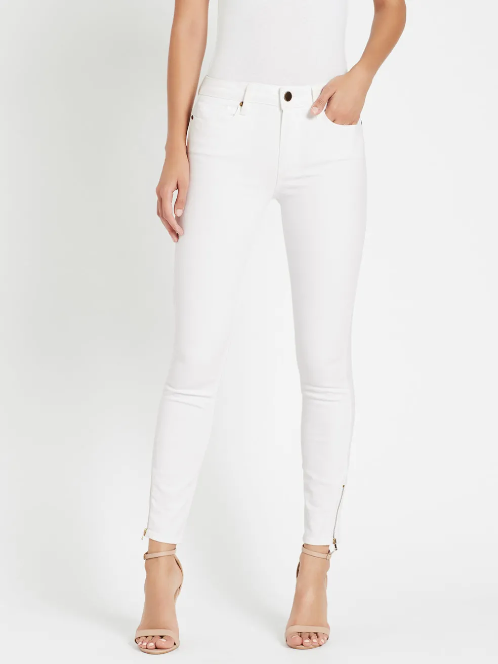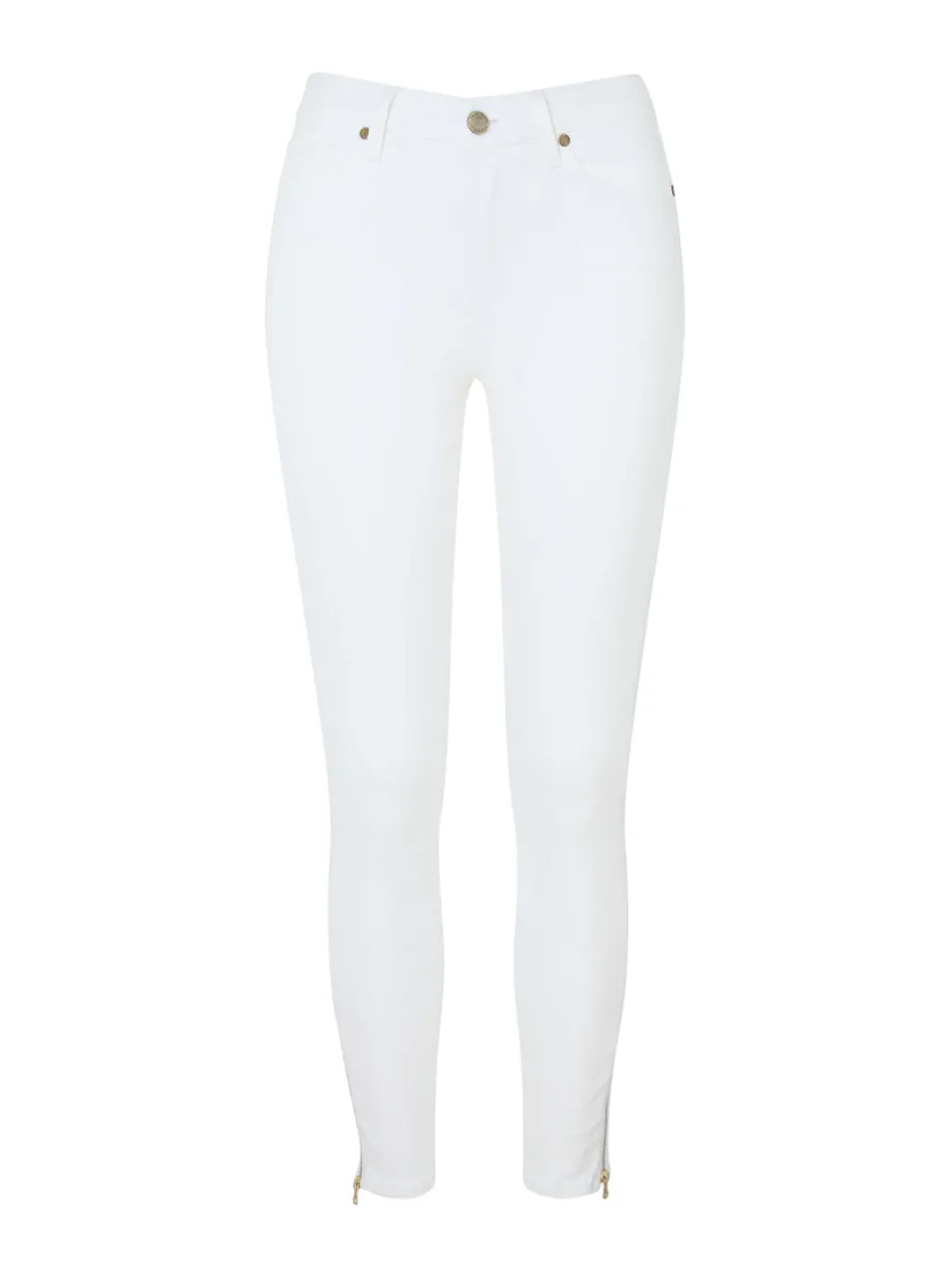 Paige’s Hoxton Ultra Skinny High Rise in Optic White are a super soft skinny fit jean, featuring gold hardware and ankle zip closures. They have a 9.5 inch high rise and clean look back pockets.