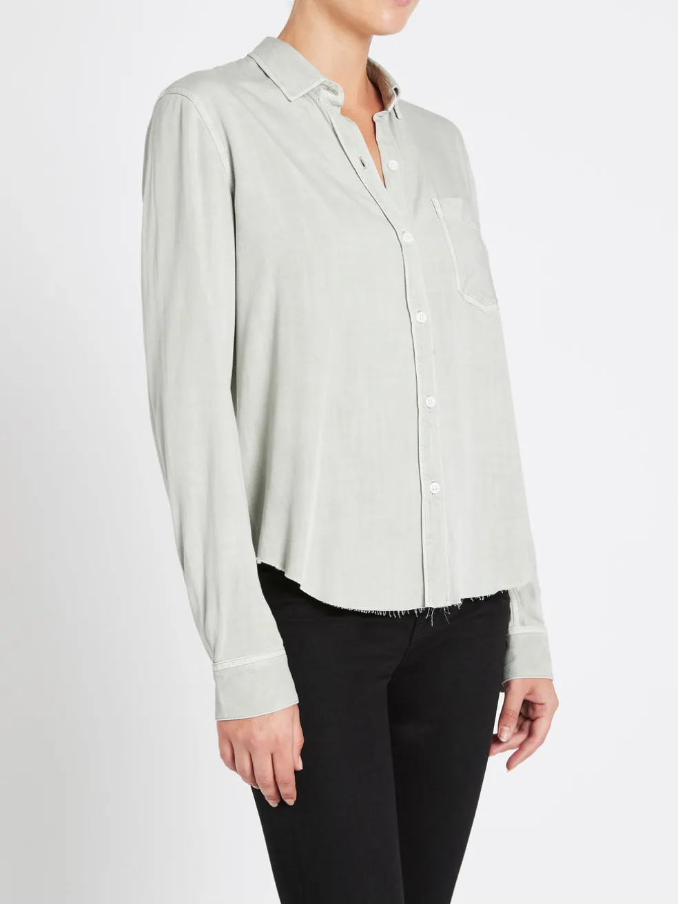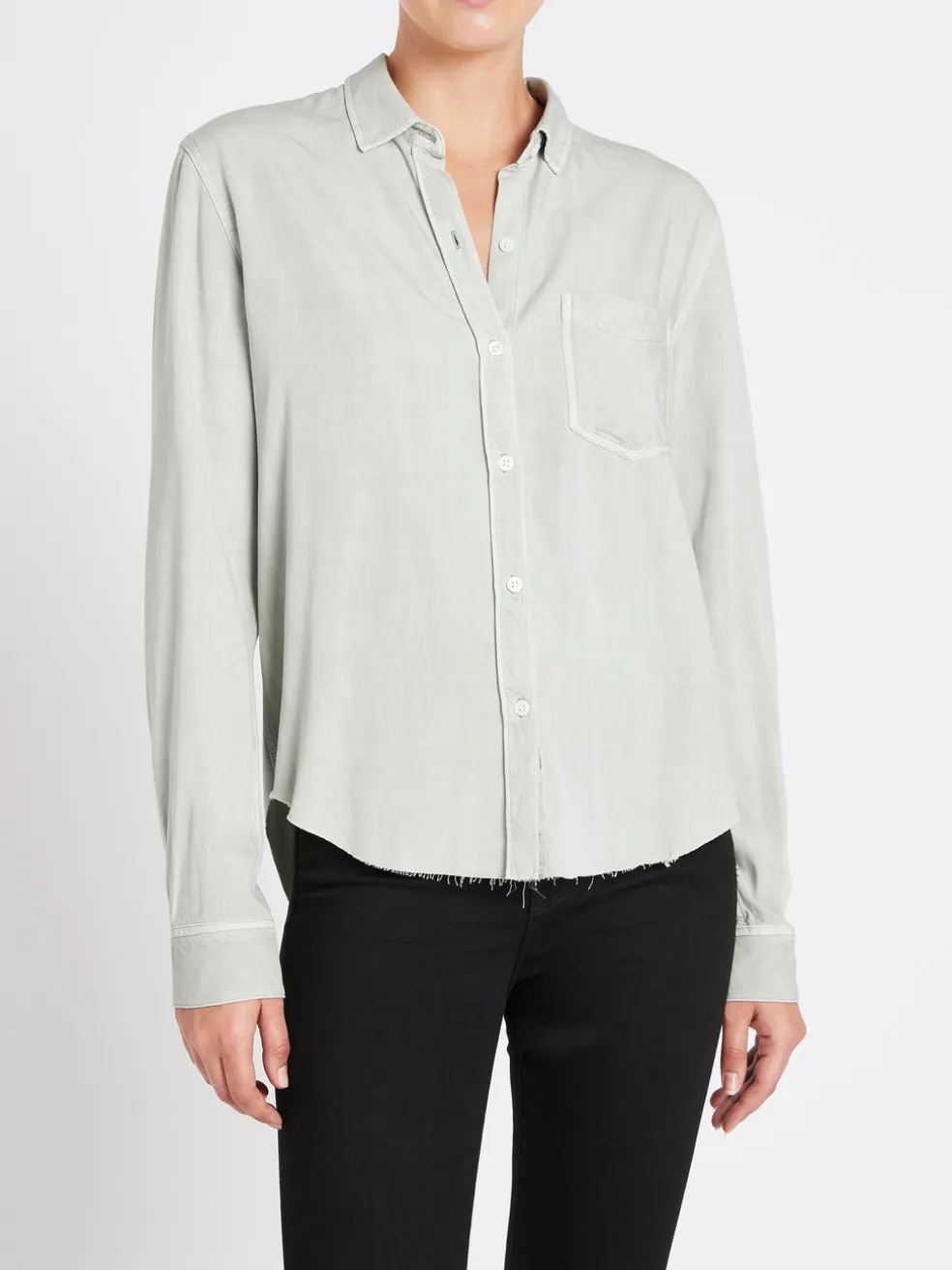 Hit refresh on your wardrobe with the Ingrid Raw Shirt in Mint by Rails. Crafted from a soft mint hue rayon this long sleeved button down shirt features a classic collar with a single chest pocket and is finished with a back yoke with a distinguished raw hemline. Pair with your favourite denim and sneakers for a super casual chic feel.
