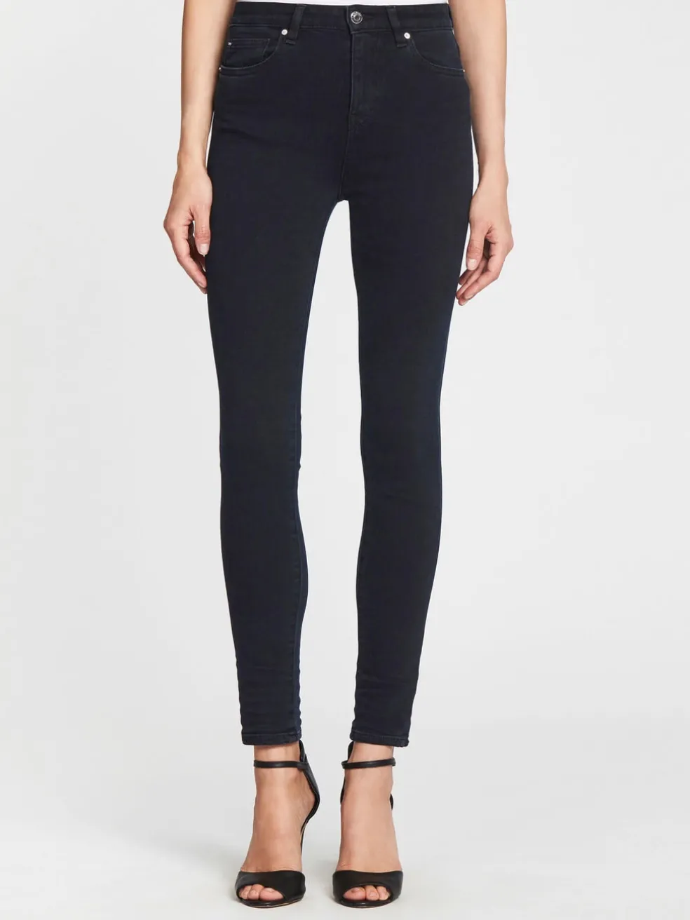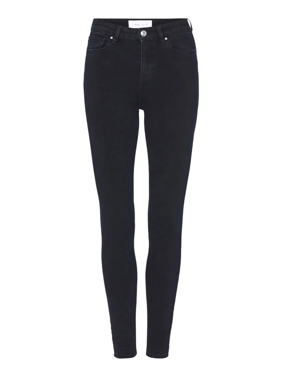 A slim fitting style, the IRO Jeans Irys Jean is mid rise design in a blue/black wash. This jean features a skinny leg, 5 pocket styling, silver hardware and a scrunched detail on the leg hem.