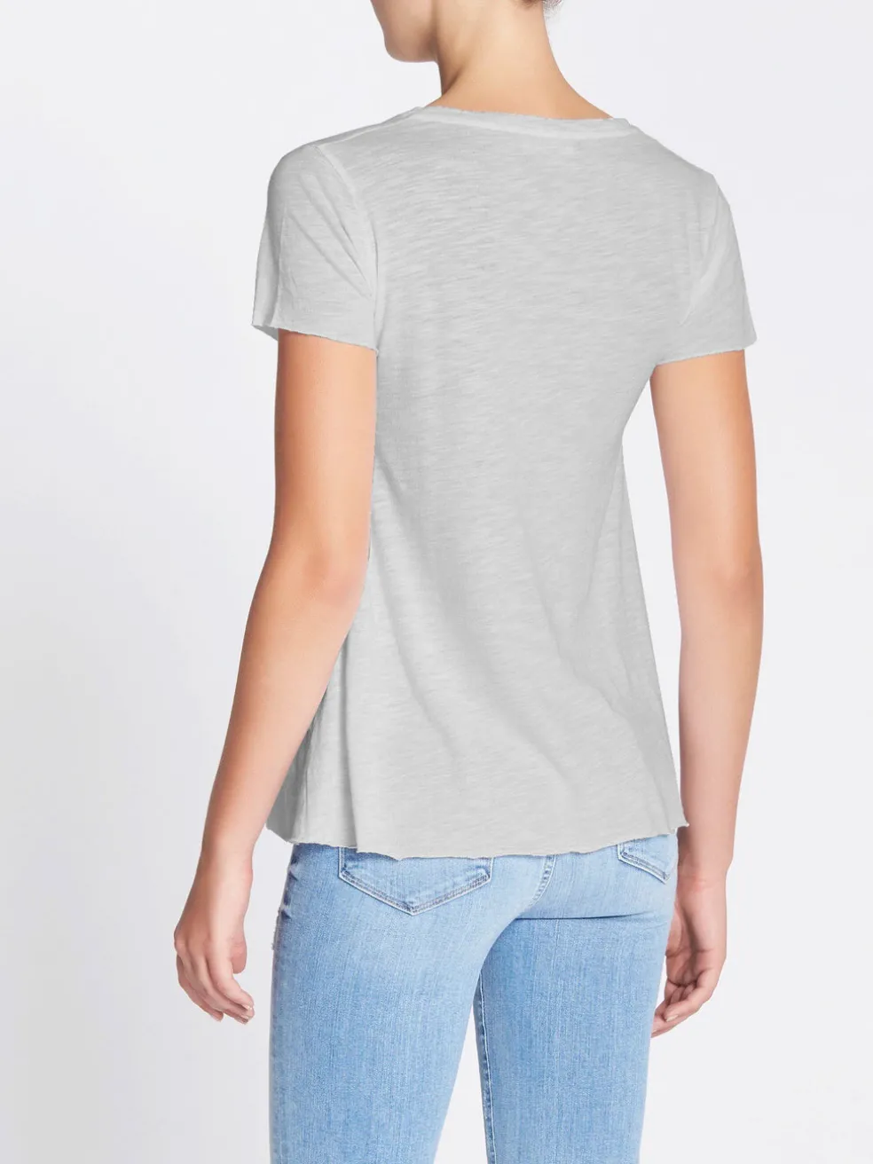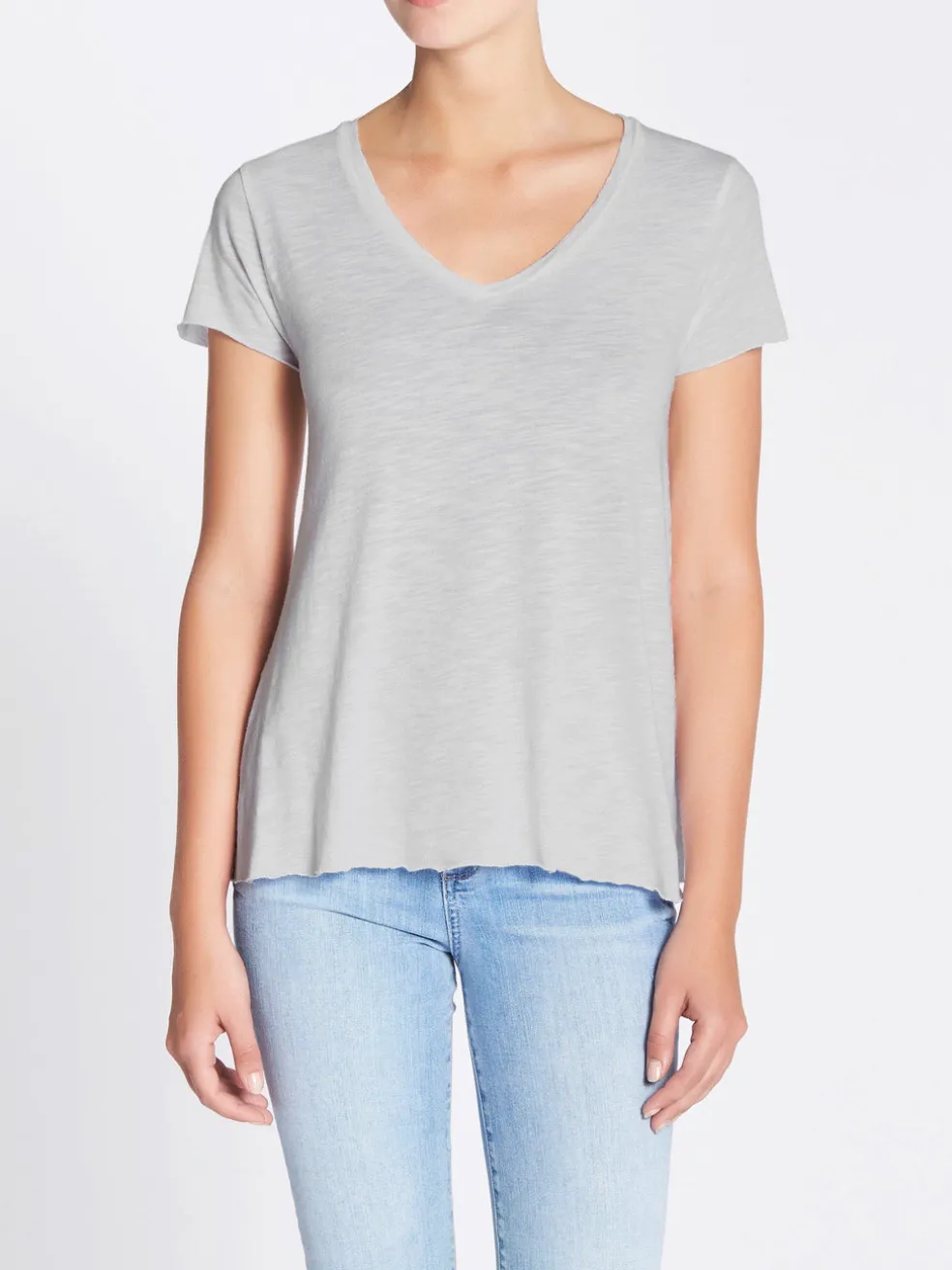 The Jacksonville Tee in a Polar Melange is a must have basic item, that can be worn all year round. Made from a lightweight cotton blend, this American Vintage V neck tee features a raw hem for easy layering and is the perfect match for your favourite pair of jeans and sneakers. You can’t go wrong with this piece.