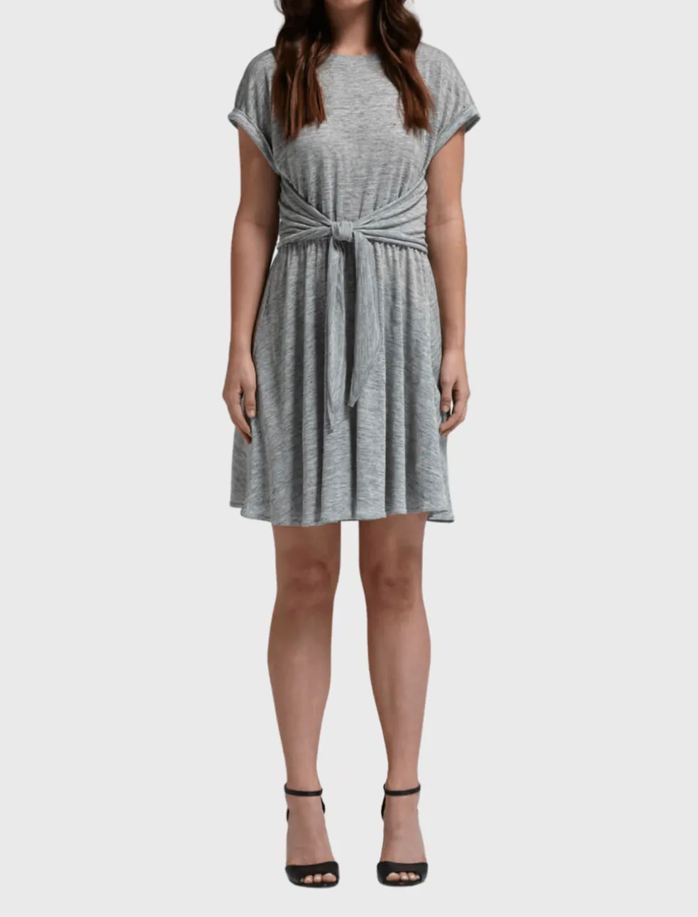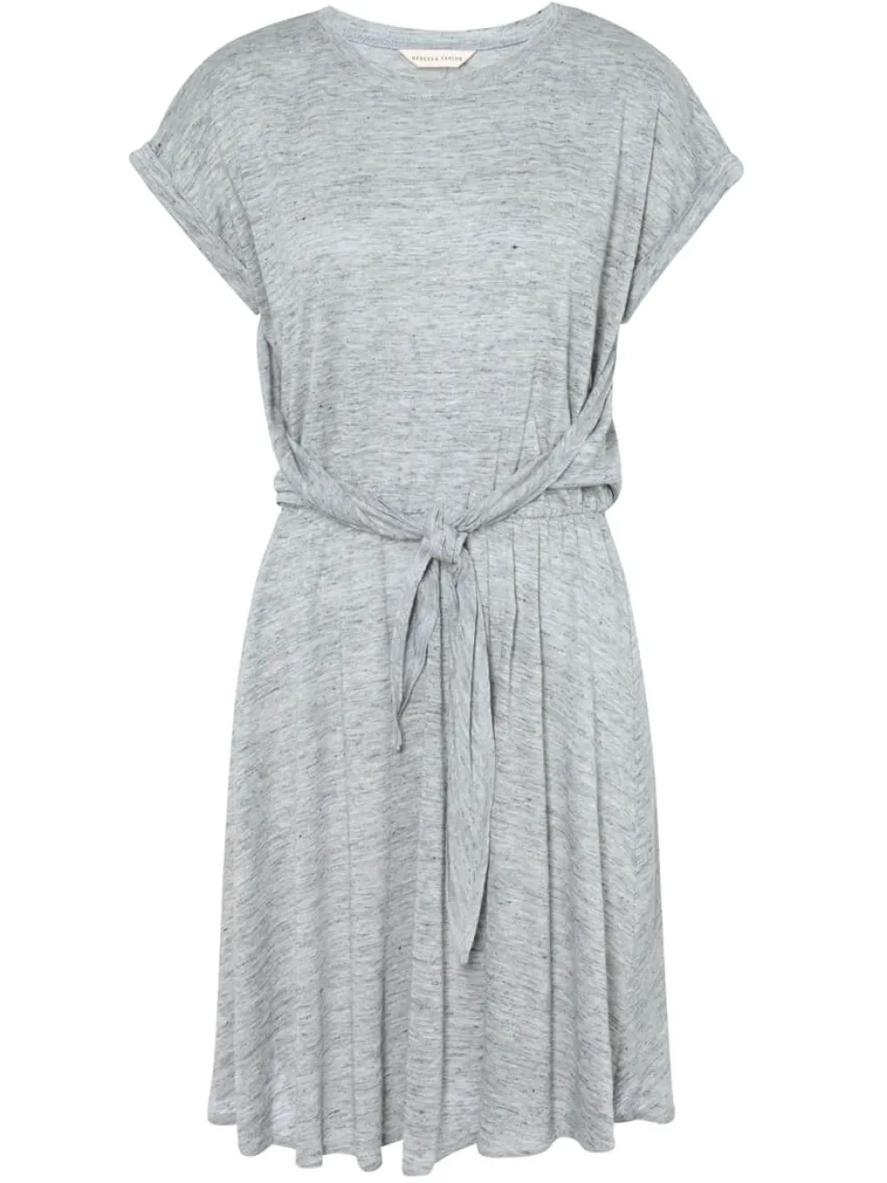 Rebecca Taylor adds her feminine flare to a classic linen jersey dress. The Jersey Wrap Dress in Grey Melange features a crew neck, cuffed sleeves, wrap-front design and elasticised waistband for added comfort.