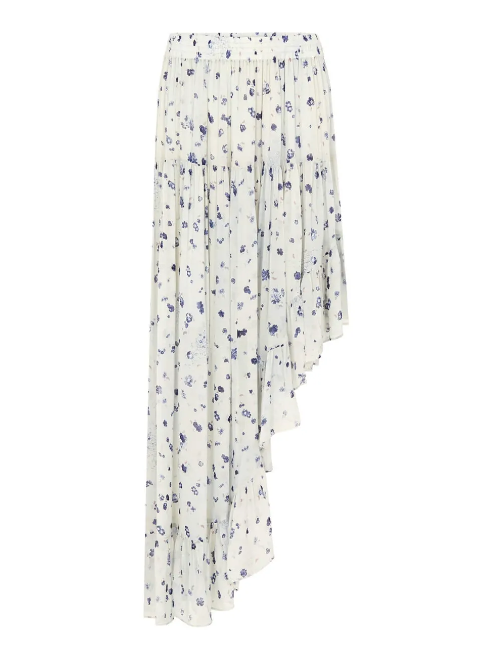 Constructed from a lightweight floral print georgette the Jonel Skirt by IRO is the perfect piece for the warmer months. Featuring a ruffled trim and smocked elasticated waistband that creates a gathered effect, this asymmetrical skirt is easy to team with your favourite white tee and slides for an easy going springtime look.