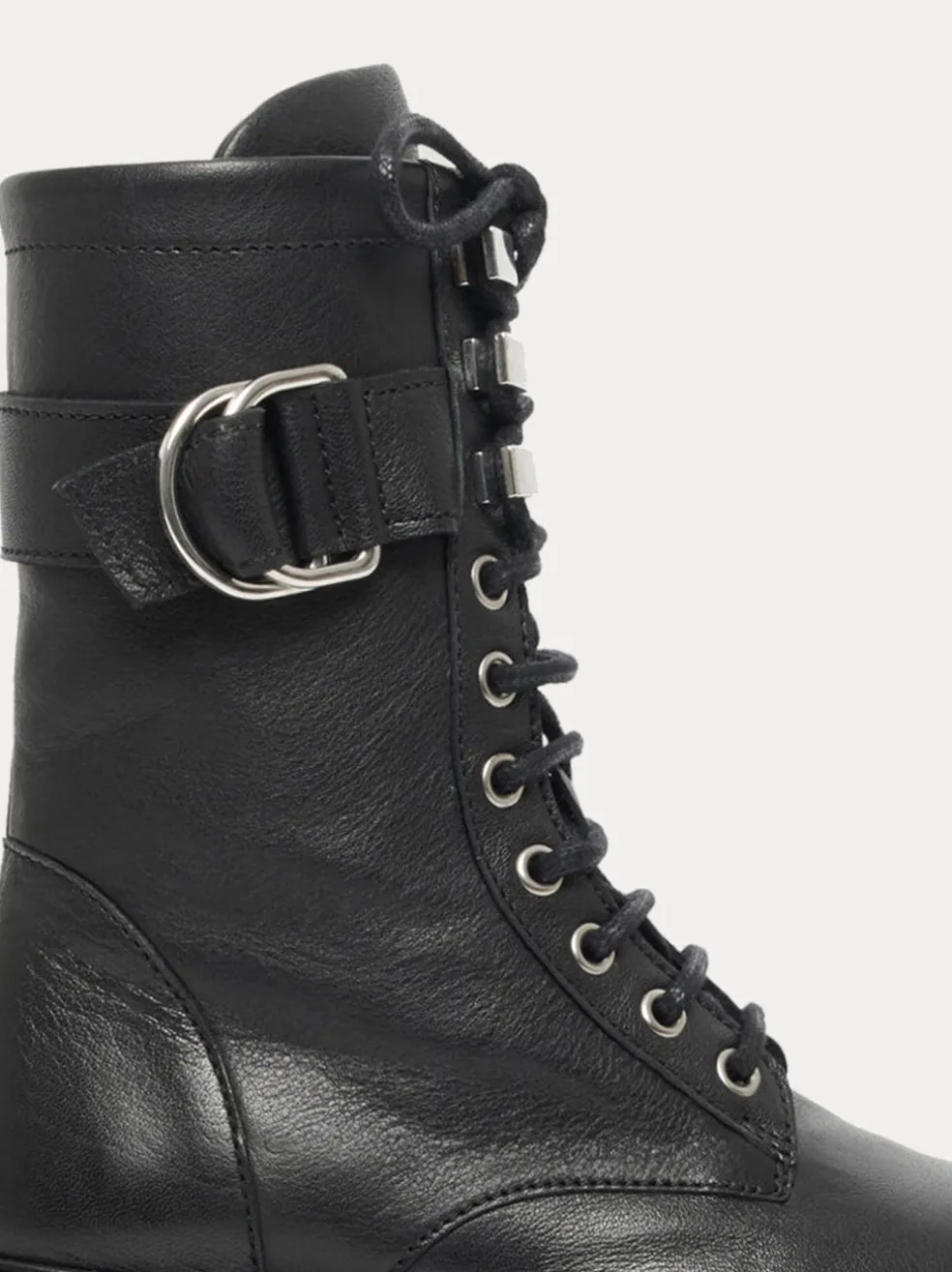 Step into a whole new you with the IRO Juadie Bootie in Black. Featuring lace-up design, round toe, metal finishes, buckled strap, side zip, and thick notched soles, these boots will add a grunge rock and roll feel to your entire wardrobe. Pair with a dress or jeans for a grunge and stylish outfit.