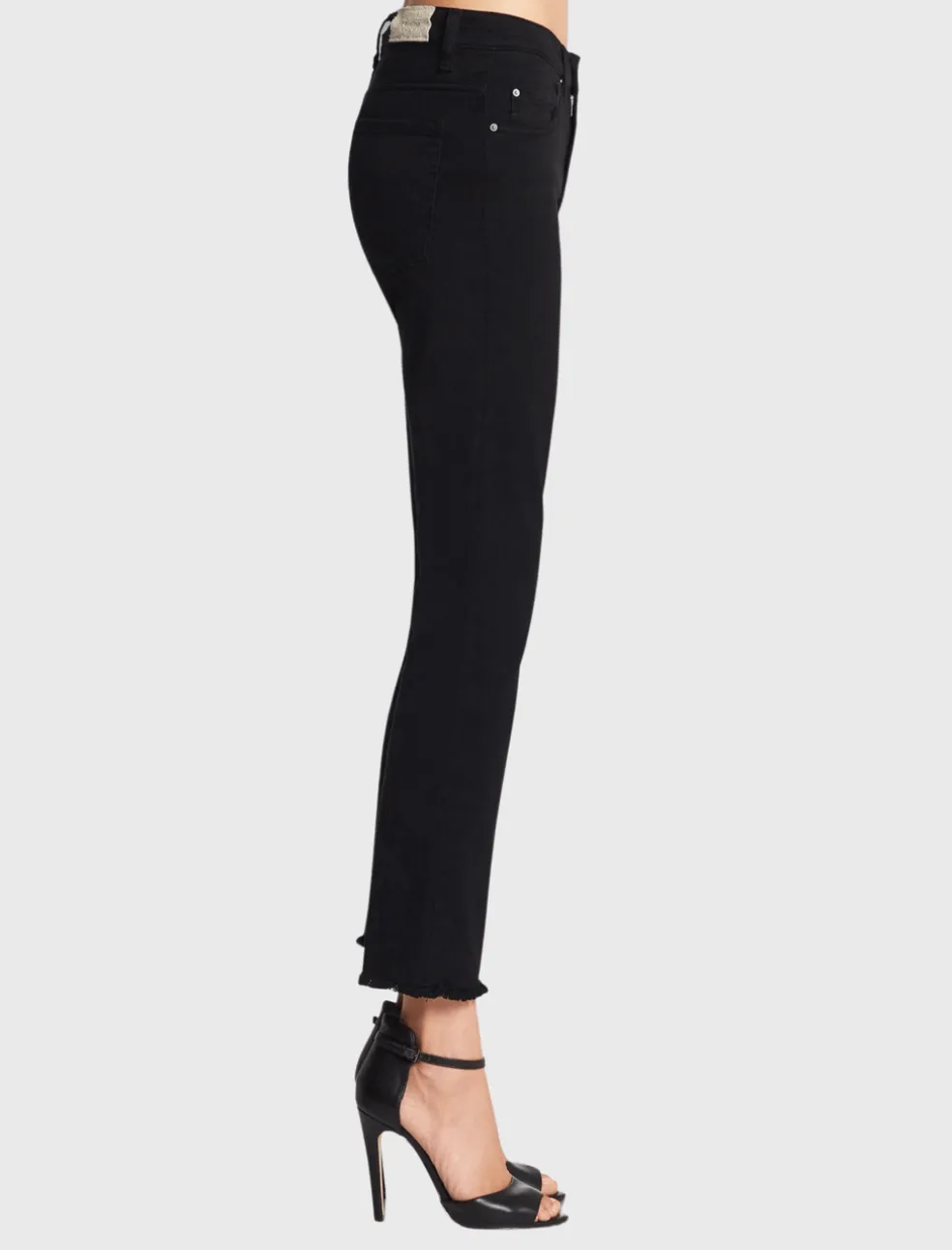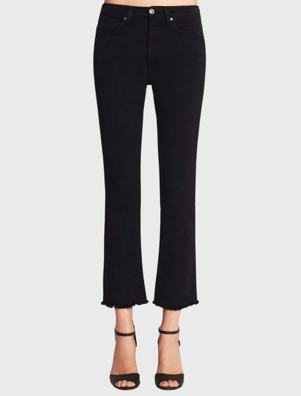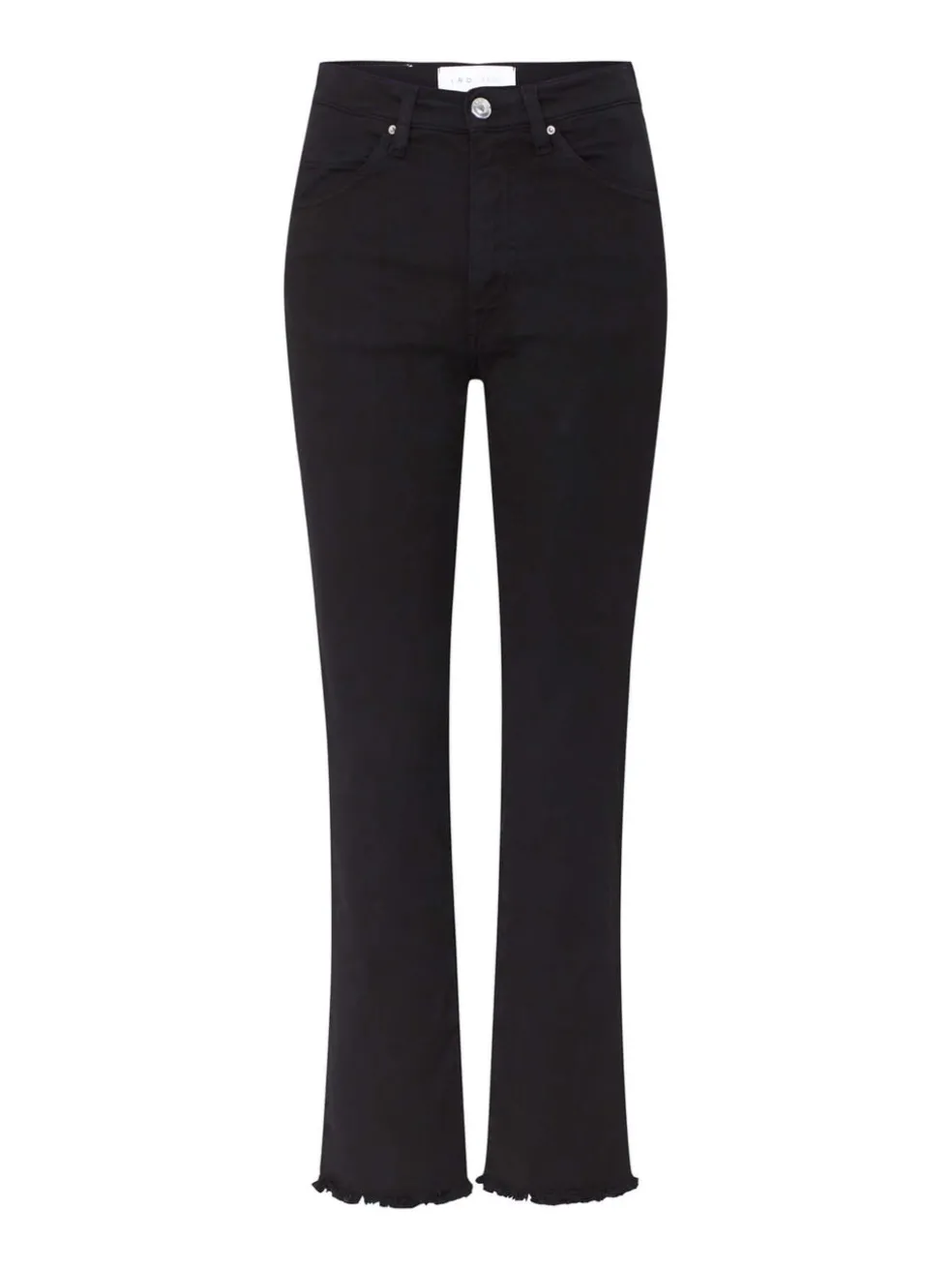 The IRO JEANS Jula Jean are a mid-rise skinny leg, raw cut cropped jean with subtle flare at the hem. Coming here in a black wash these jeans feature a single button fly closure, 5 pockets and silver hardware. Wear with heeled black ankle boots and your favourite tee for that easy off-duty style.