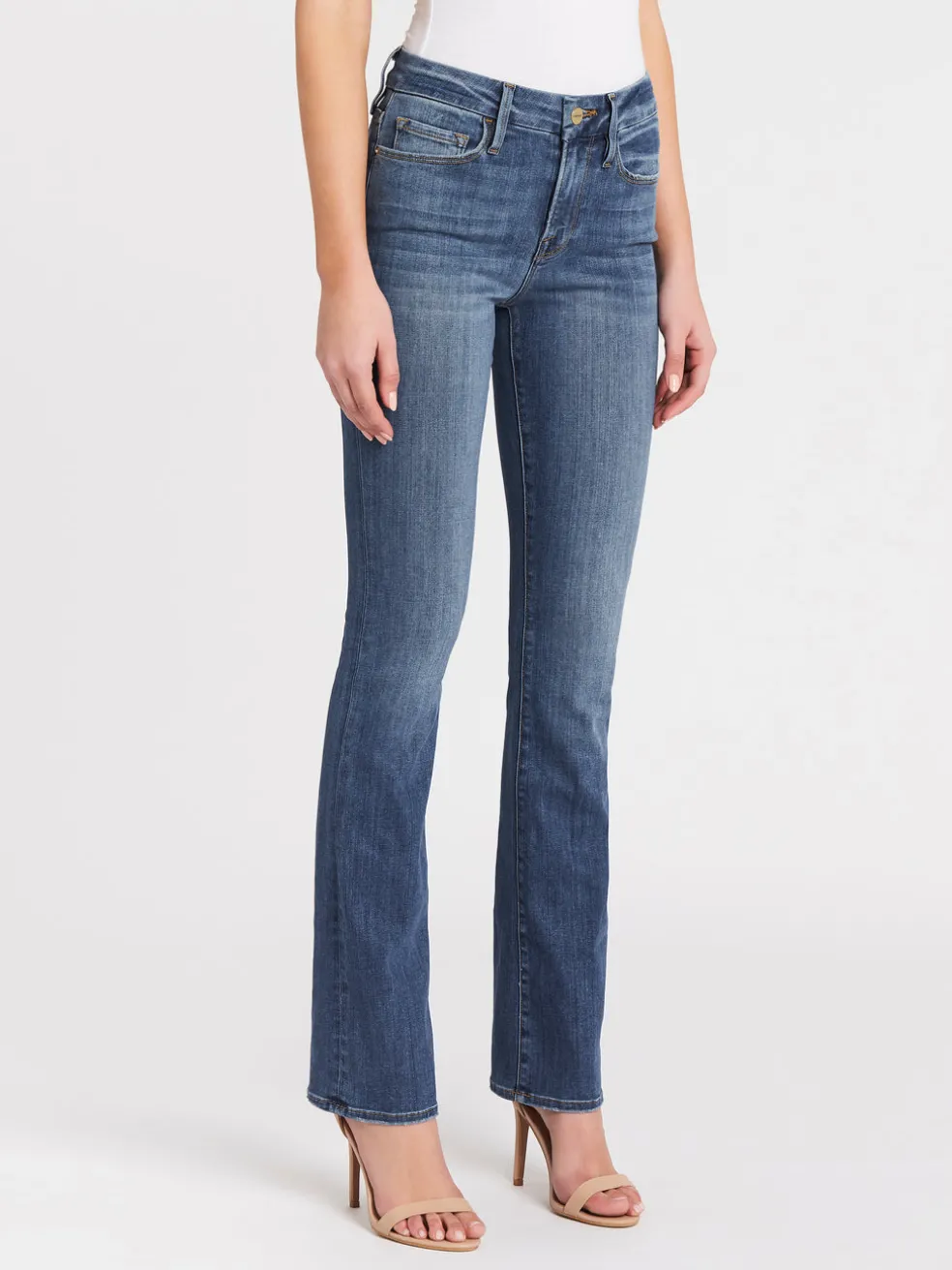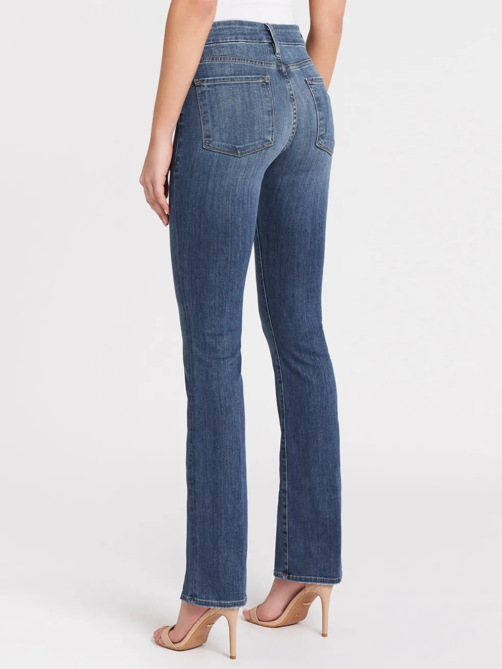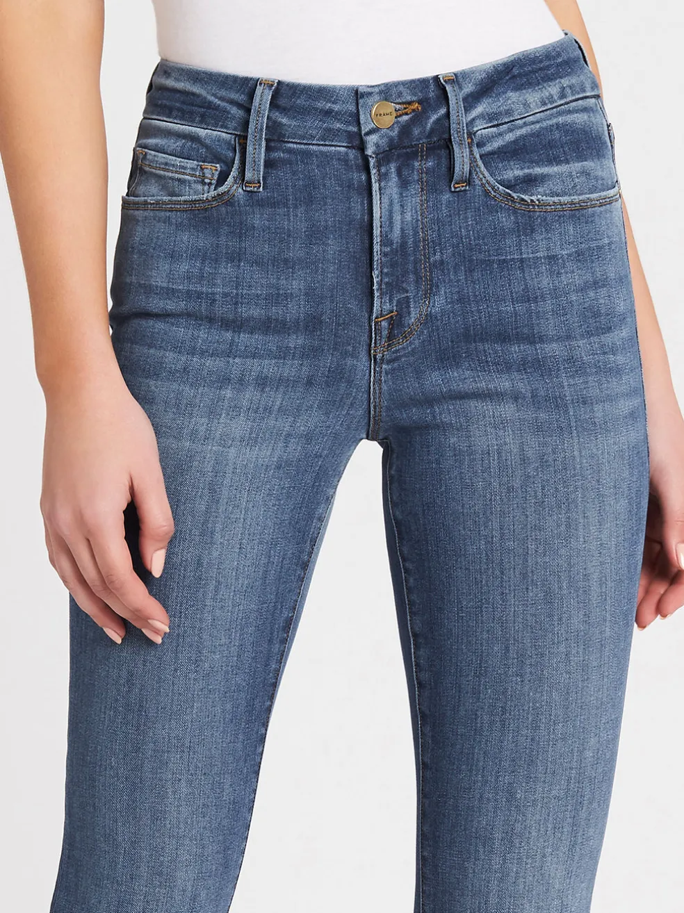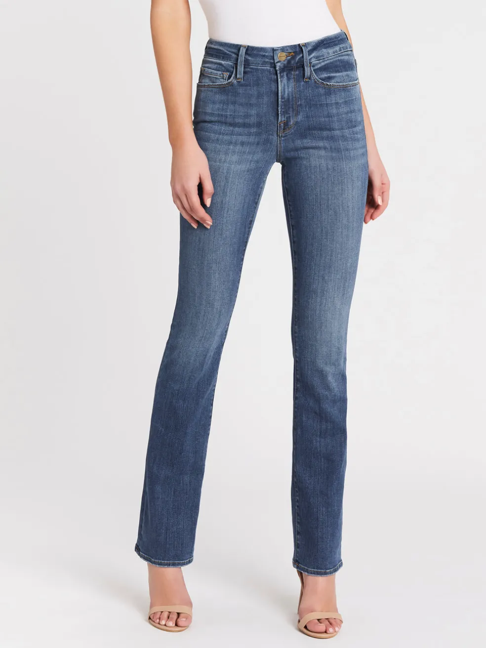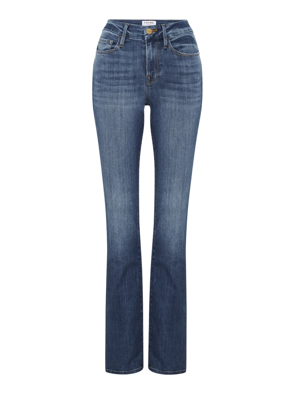 The Le Mini Boot in Poe by Frame Denim is the perfect addition to update your denim collection this season. Constructed from an ultra soft cotton blend these straight cut mid rise jeans feature a comfortable contoured form fitting waistband, dual front and back pockets with gold metal hardware detailing. Finished with a single zip fly closure and a silhouette that tapers out from the knee for that slight sleek kick at the ankle. Give life to a simple tee and pair back with your favourite boot for the ultimate laid back weekend look.