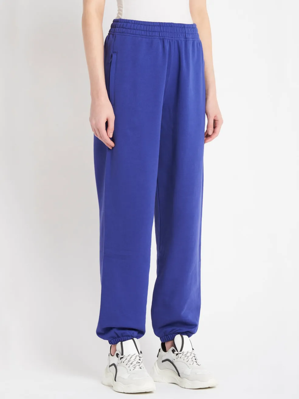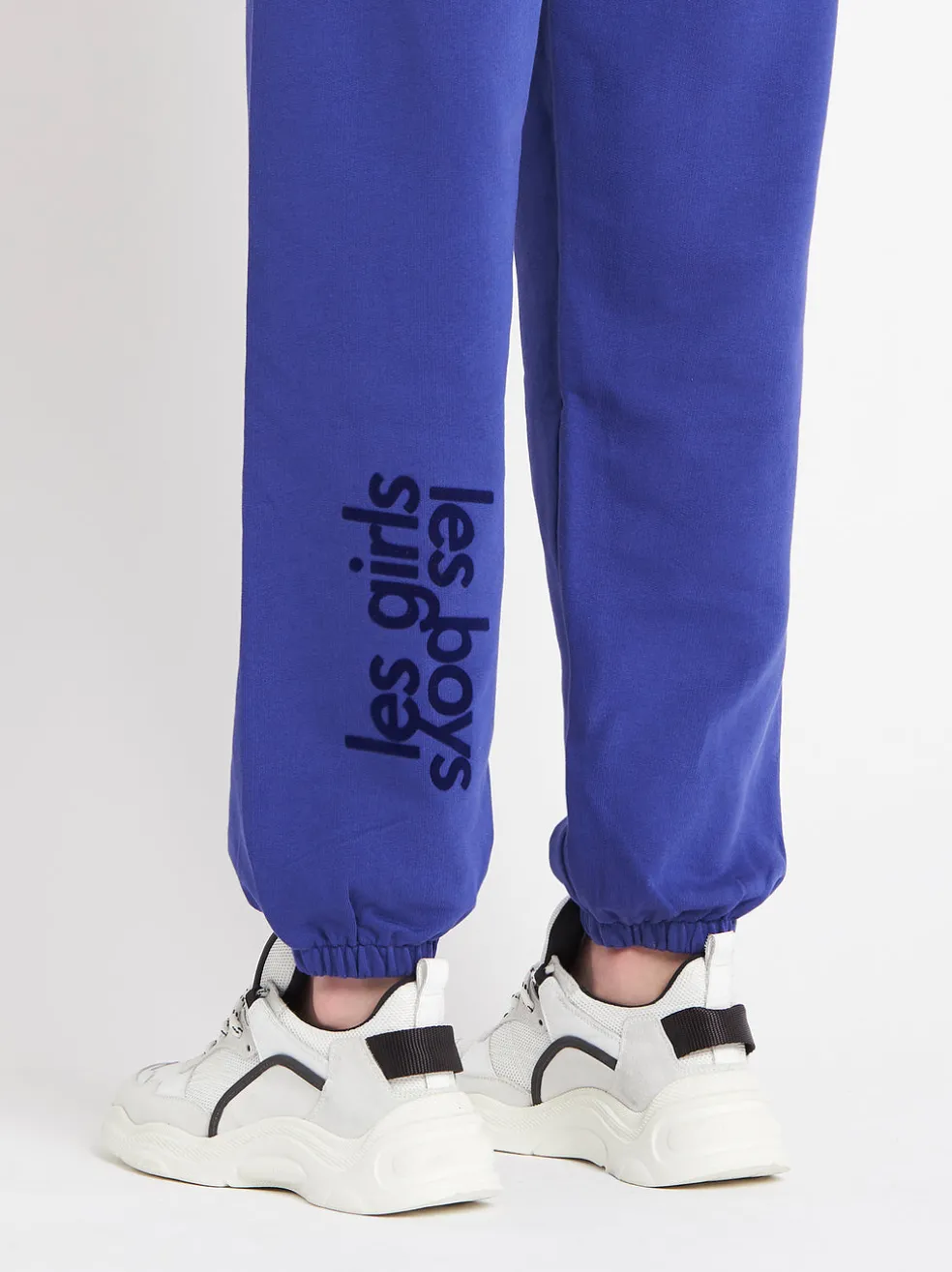 These french terry Les Girls Les Boys Regular Track Pants in a bright Spectrum Blue are made from 100% Organic Cotton. The Loose Fit Track Pants are loved by fashion editors over the world they feature twin slip pockets across the front hip, a flocked tonal logo print on the back of the left leg, an elasticated waistband and cuffed leg. Pair back with the Les Girls Les Boys Crew Neck Sweatshirt in Spectrum Blue and live your most comfy life.