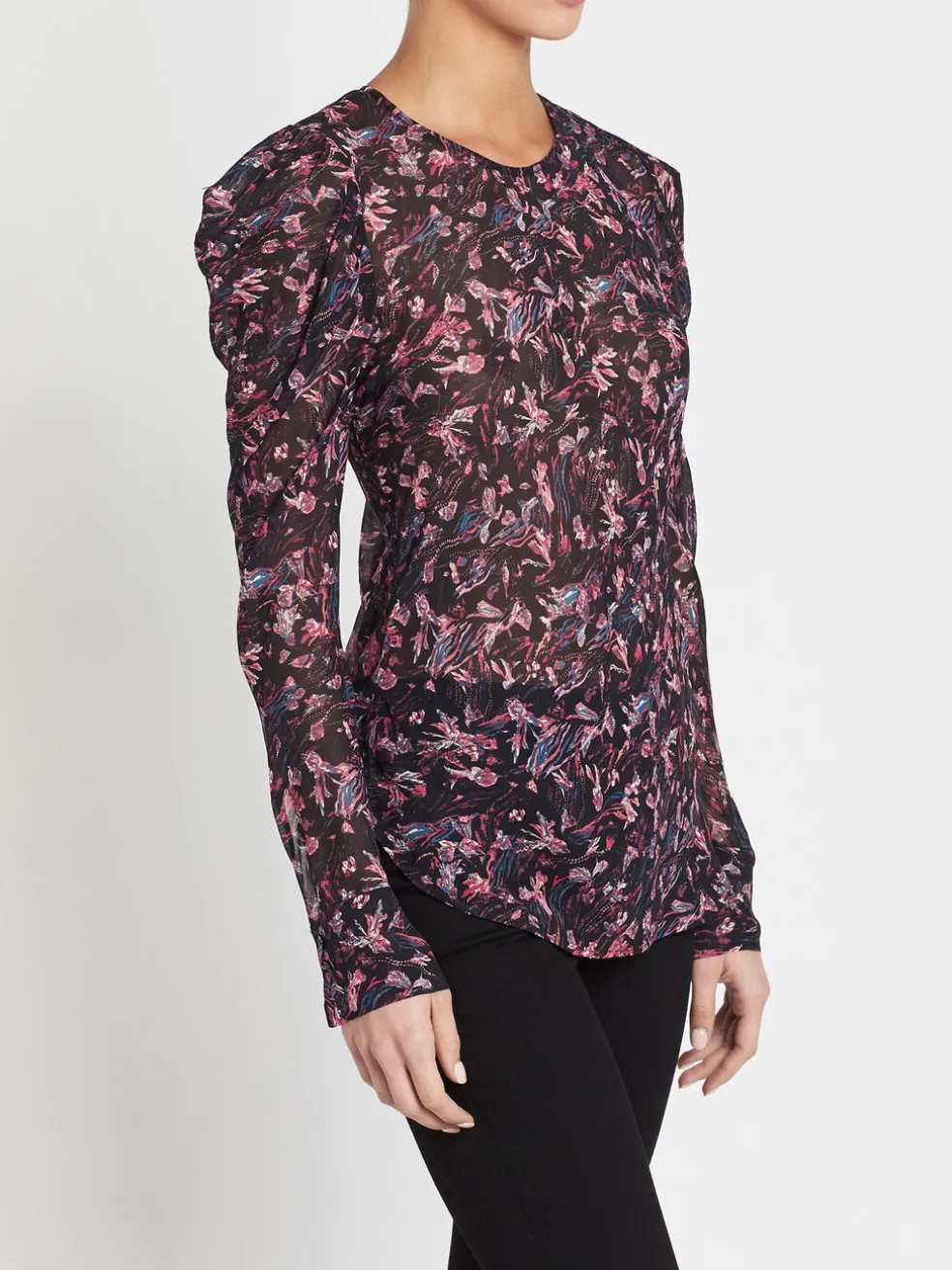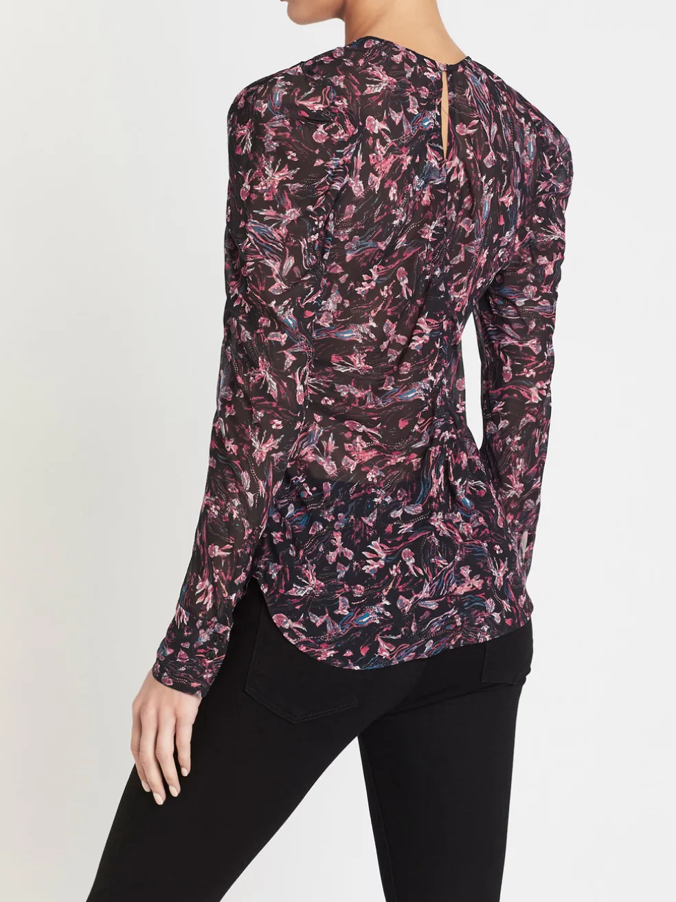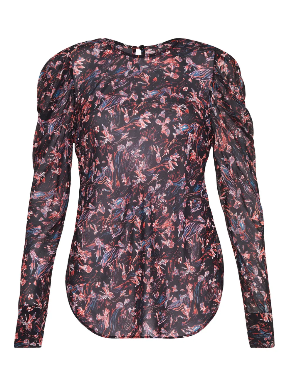 Shake up your 9-5 wardrobe in the Lou Top in Black by IRO. Constructed in Viscose, this long sleeve blouse features on trend exaggerated shoulders, round neckline and is finished in a beautiful abstract floral print. The perfect day to night addition to any wardrobe.