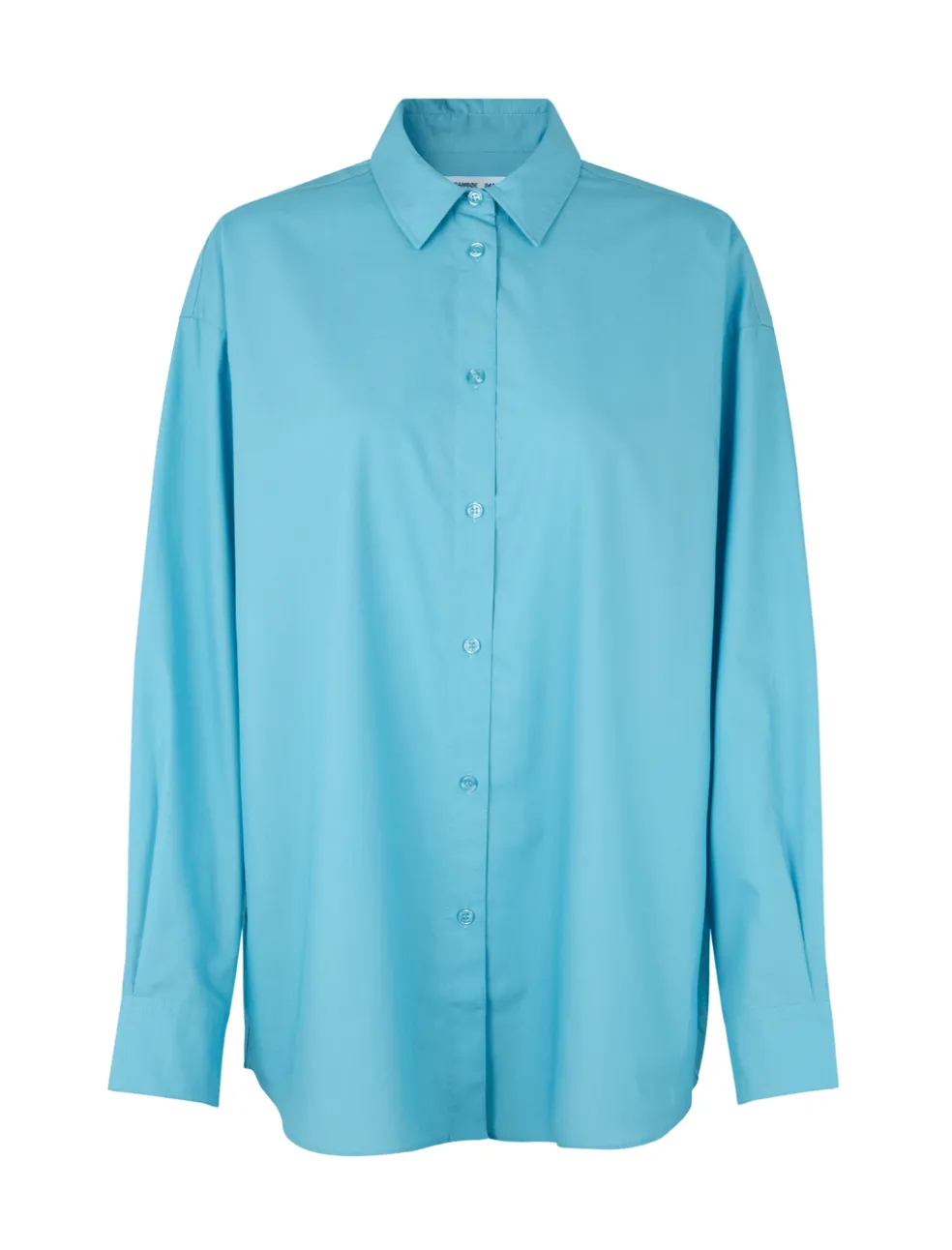 Get ready to add a splash of colour to your wardrobe with Samsoe Samsoe’s Lua Shirt in Topaz Blue – bright azure blue like the waters of Capri. Cut for a relaxed fit, this oversized shirt features dropped shoulders, a pointed collar, and long sleeves with button cuffs. The back neck yoke seam with pleats and curved hem provide a flattering silhouette.