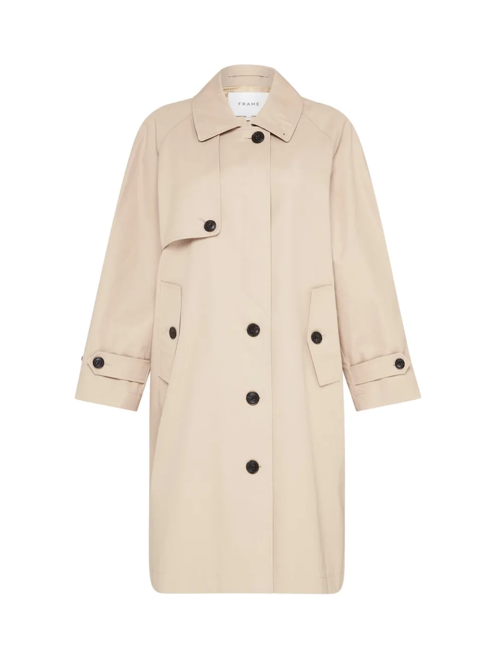 A modern take on the classical trench coat, the Frame Denim Mac Coat in Khaki Multi is the perfect investment piece to add to your wardrobe. Constructed from 100% cotton this piece is functional yet stylish and features a centre front opening, side pocket and contrast oversized buttons. Throw over a white tee and straight leg jeans for elevated weekend style.