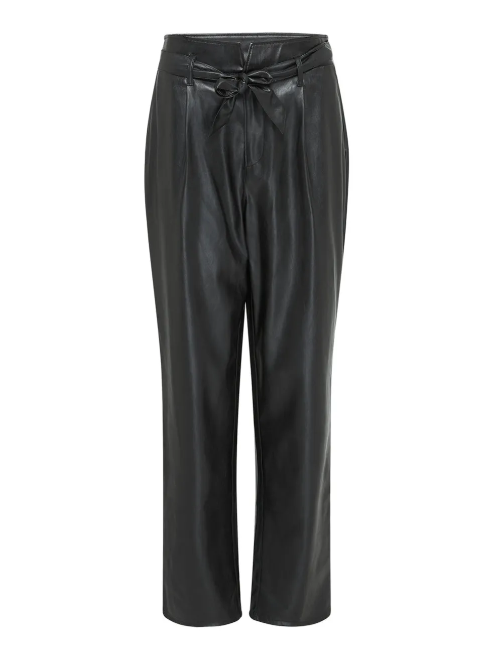 Witch meets Chic in the Paige Melila Pant in Black. Crafted in Vegan Leather and finished with a paper-bag waist, these pleated straight leg trousers demand to be paired with a tucked-in top or bodysuit. The flattering paper-bag waist is further accentuated with a v-shaped notch at the front and a self-belt. The vegan Leather fabric provides a smooth, soft and comfortable fit – perfect for riding your broom through the moonlit night.
