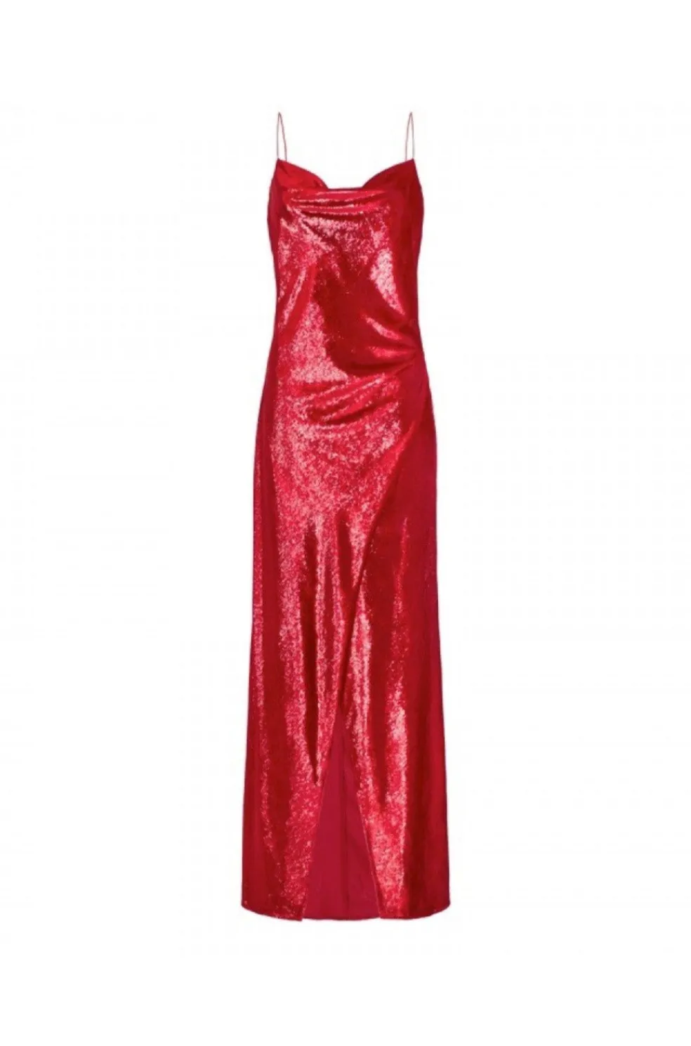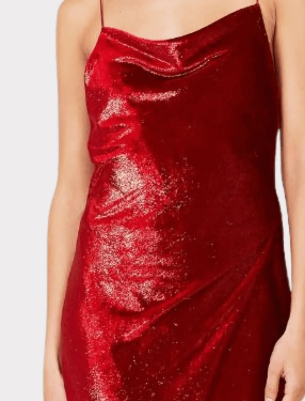Turn heads this event season with the Camilla and Marc Mickey Slip Dress in Scarlet. Constructed from a stunning lurex velvet this midi length dress features fine rouleau straps, a draped straight neckline and is finished with an ultra sexy slit through the front. Pair yours with strappy heels and you’ll be good to go.
