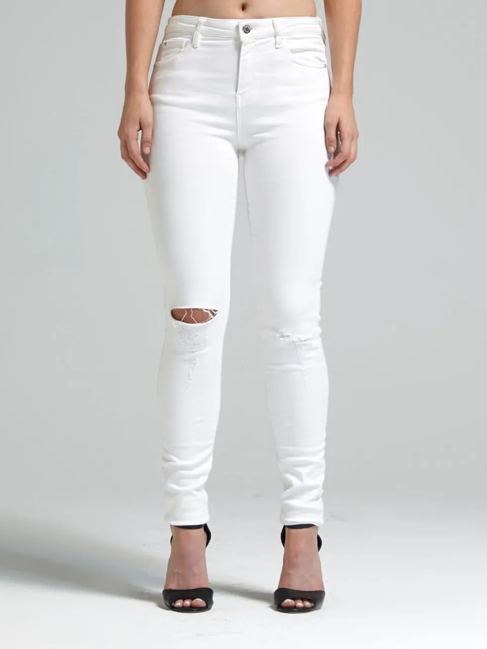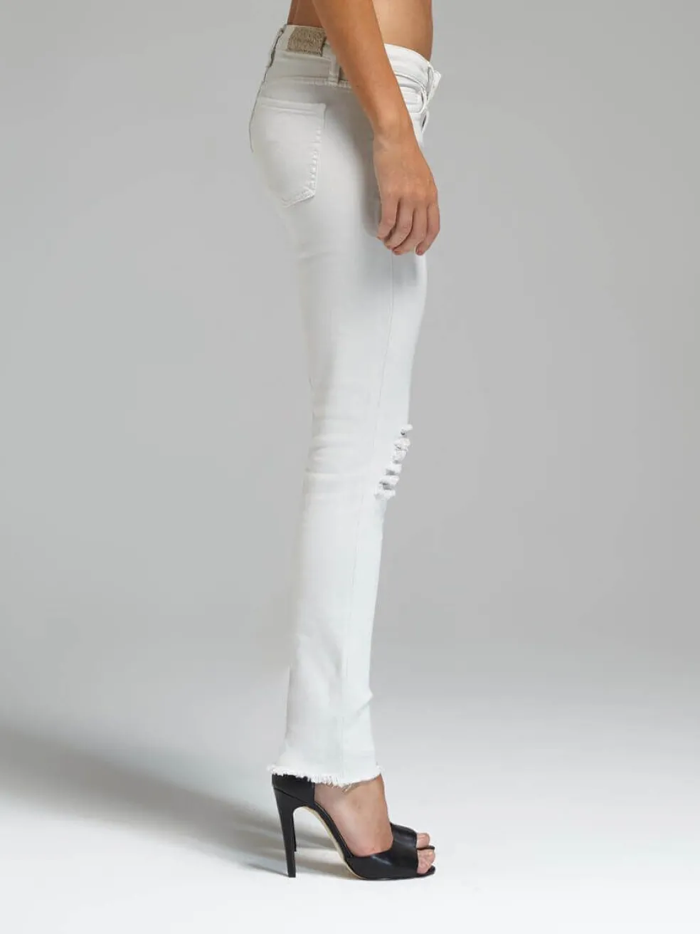 Shoot for the stars in the straight legged Moon Jeans by IRO Jeans. Styled with silver hardware, these white denim jeans have a mid rise of 10.5 inches and are detailed with destruction on both knees and a right knee rip.
