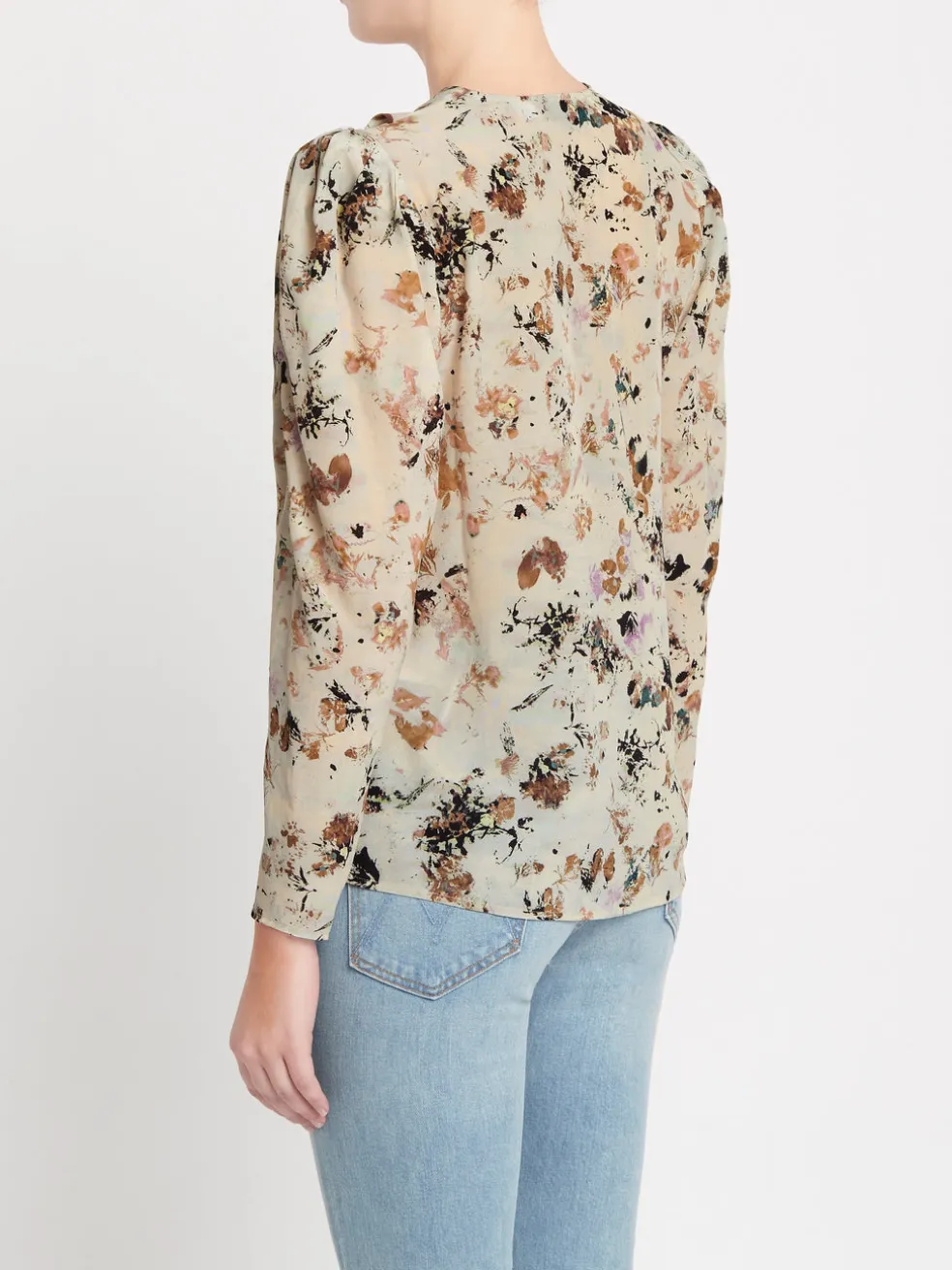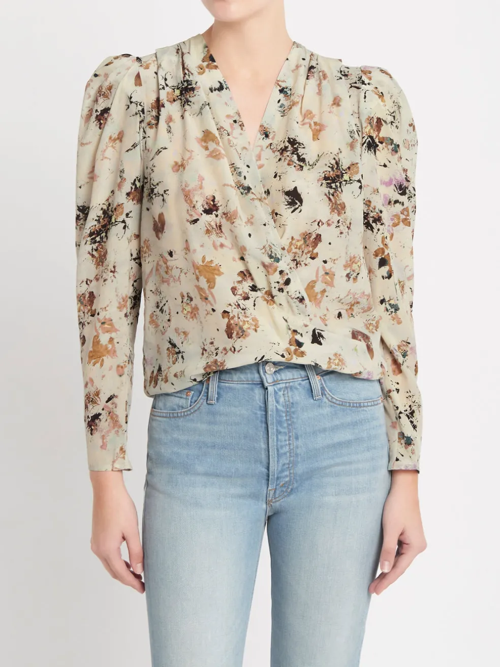This pretty puffed sleeve blouse in a cream based autumnal print will have you racing to the vineyard for a glorious photoshoot. The Myla Top from Parisian fashion brand IRO is a faux wrap style with a pleated V neck, the Beige Multico print is a brushy, leafy design is reminiscent of pressed flowers. Wear with your favourite denim and knee high boots.