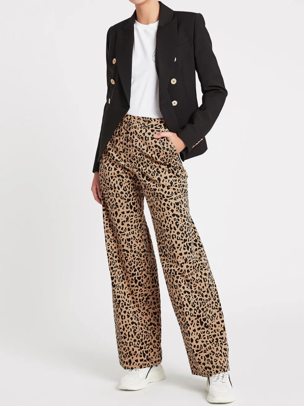 The Baum Und Pferdgarten Natia Pants in Beige Black Leo are not for the faint-hearted. These heavy cotton pants with wide legs are made to stand out, calling on your inner leopard. Pair with a black cami for a casual weekend look, or a blazer to take the workforce by storm. Take a walk on the wild side with the Natia Pants.