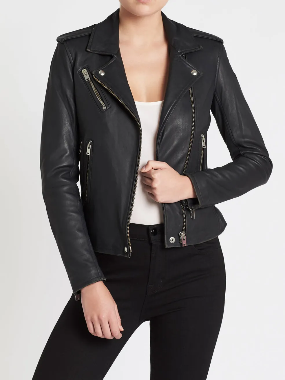 The Newhan Leather Jacket in Slate Grey by IRO is the perfect timeless must-have piece to add to your wardrobe. Constructed from an ultra soft lamb leather this leather jacket features a notched collar, a zip closure, three zip pockets and is finished with a fleece lining through the body.
