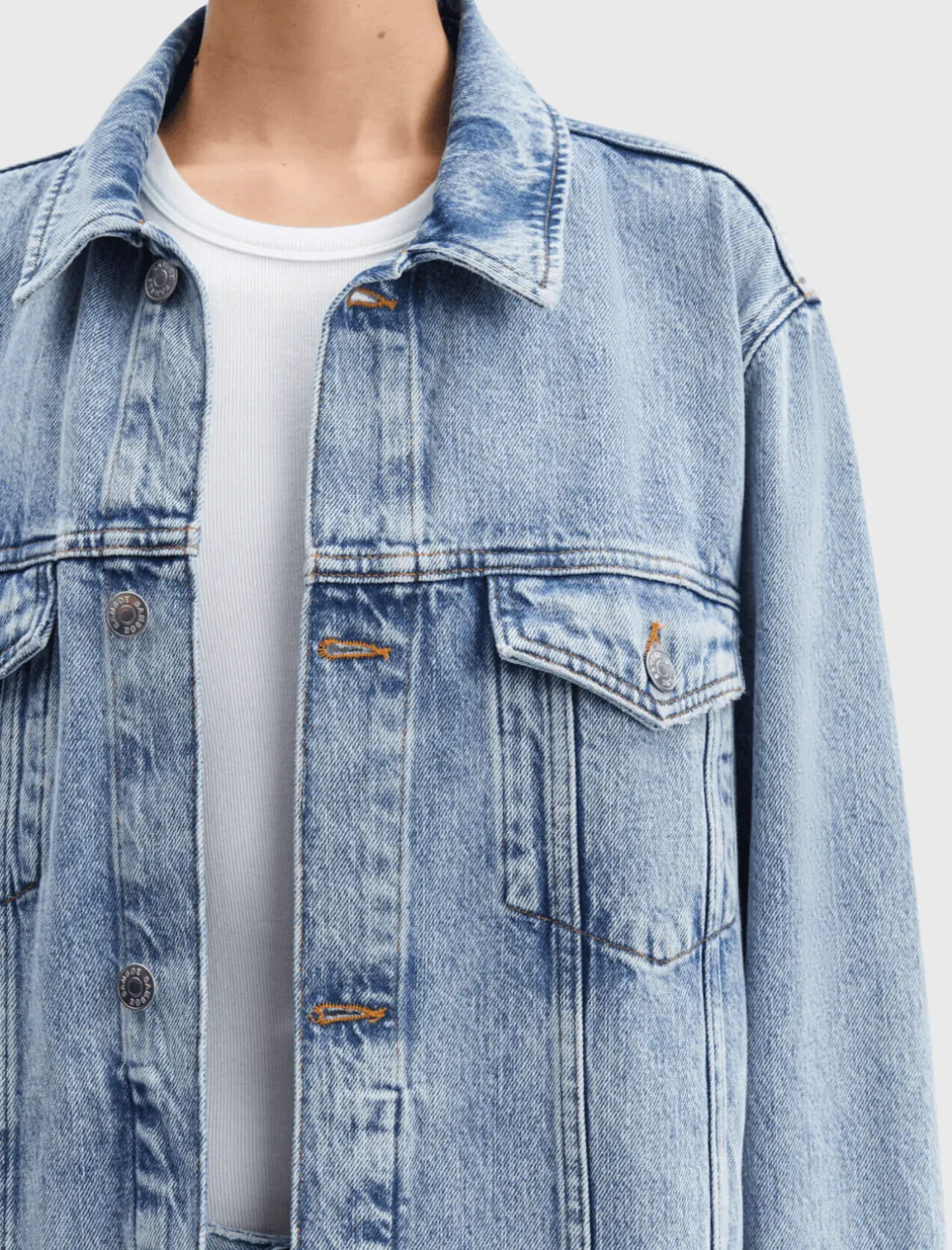 The vintage-aged and faded indigo blue wash gives it that perfectly worn-in look you love. But here’s the best part: it’s made with an organic cotton and recycled cotton blend denim. That means you’re not only slaying in style but also making a positive impact on the planet. This jacket contains organic cotton grown without GMOs or hazardous chemicals, as well as recycled cotton derived from pre- and post-consumer waste. Double win!