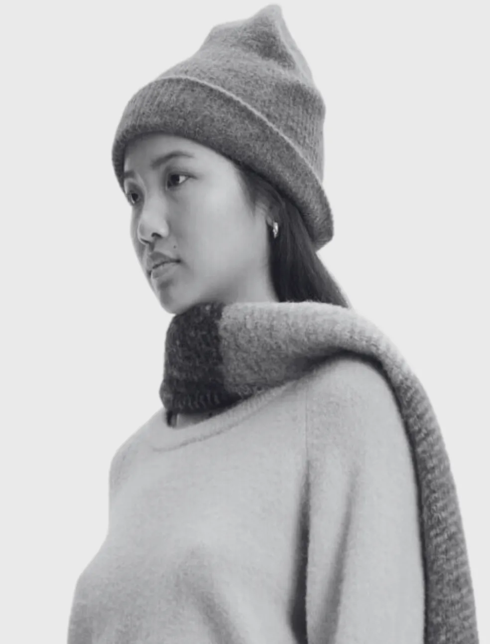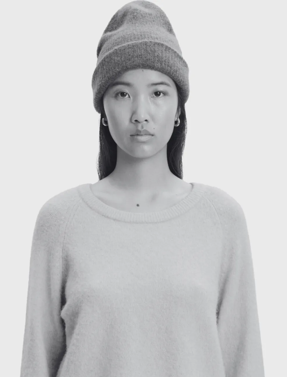 Samsoe Samsoe’s Nor Knitted beanie in aloe wash is a cozy and stylish accessory that is perfect for cold weather. This hat is made from a soft blend of alpaca and merino wool yarn, the beanie has a neat fit thanks to its rib structure. The aloe wash a pale mint toned color adds a touch of sophistication to this classic winter staple. Keep your head warm while looking chic with this versatile and comfortable beanie.