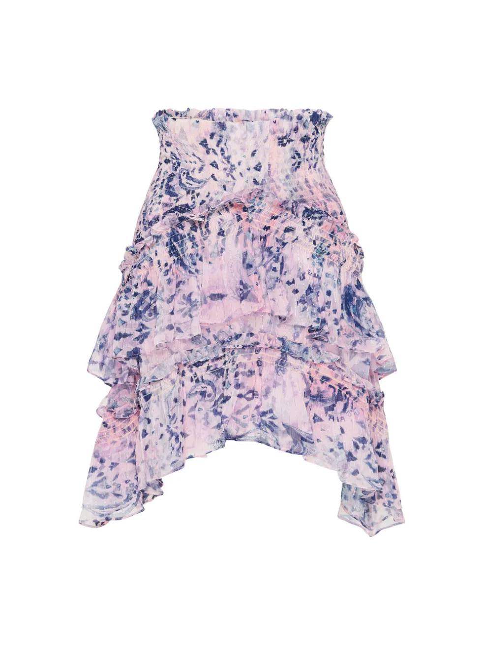 Flirt your way to warmer days in the Pampala Skirt in Light Purple. Crafted in a lightweight viscose blend, the IRO skirt features a comfortable elastic waistband, sparkling metallic thread and tiered flirty ruffles. The perfect finish to a basic cami and boots.