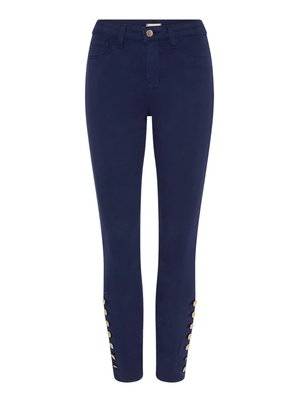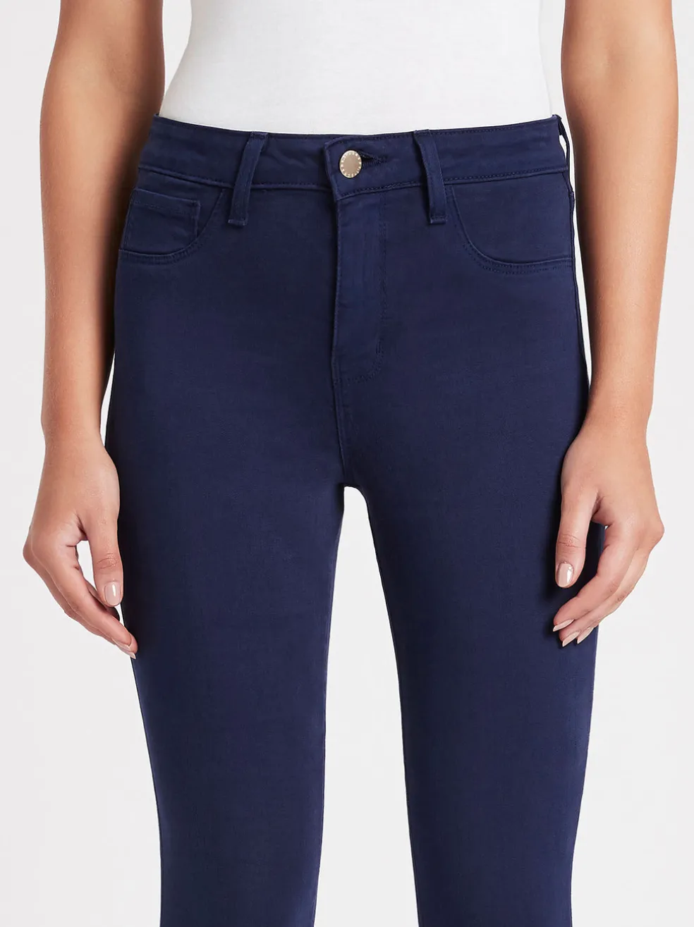 The L’Agence Piper High Rise Skinny Jean in Stargazer are a high waisted, slim fitting jean with a dark navy hue. Crafted from super stretch denim, these mid denim jeans feature gold dome button details along the ankle, dual front and back pockets and are finished with the signature contoured waistband for a stay put feel. Team yours with the L’Agence Kenzie Double Breasted Blazer in Navy for a polished style.