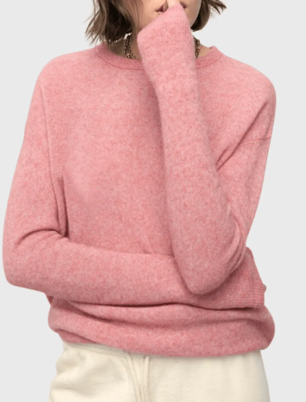 This classic crew neck knit from American Vintage is the perfect all rounder. With full length sleeves and a light bouncy knit fabric, this knitted sweater has a long line body with a ribbed hem and sleeve cuffs. Pair with a light blue denim and classic sneakers for a fresh weekend style.