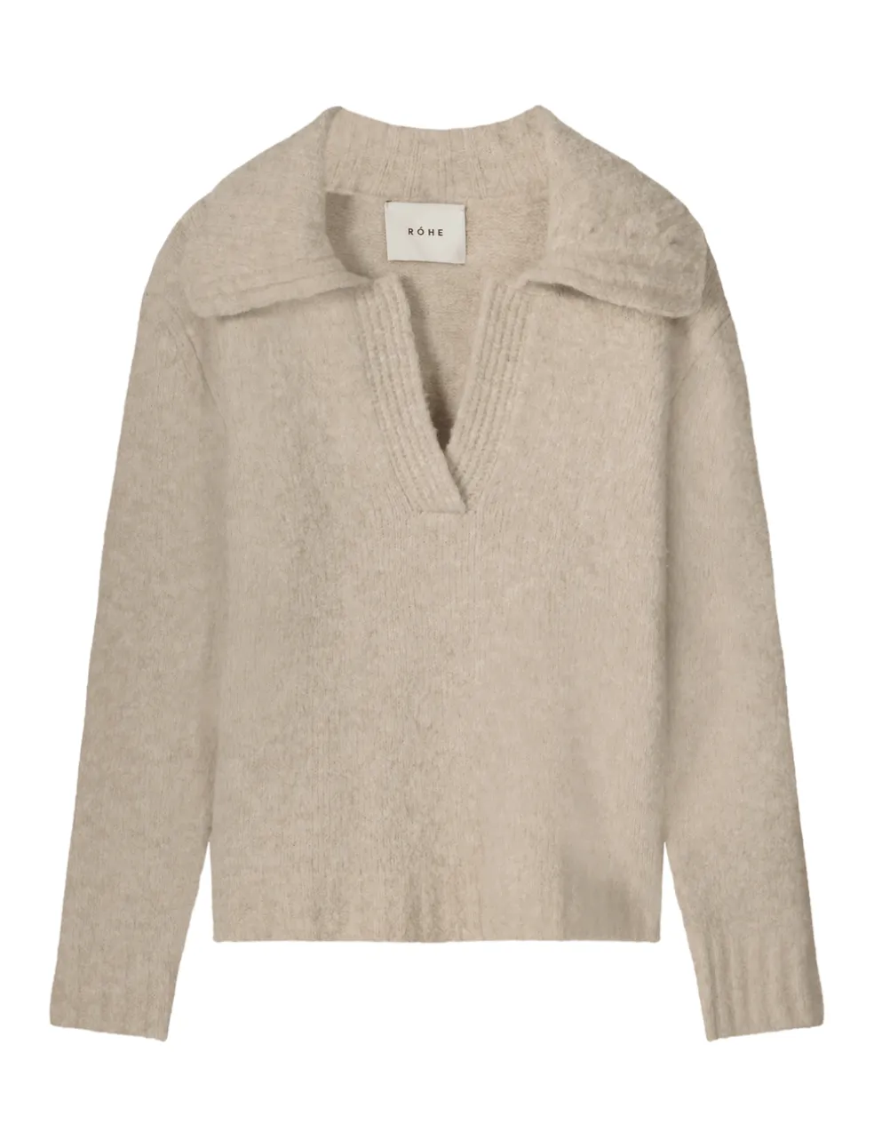 Rug up this winter in style with the Róhe Reza Pullover in Biscuit Melange. Cozy and soft, this oversized polo is knitted in Italy from extra-fine merino wool. Róhe melds high-quality Italian fabric with modern design, creating fashionable items that outlive the passing trends.