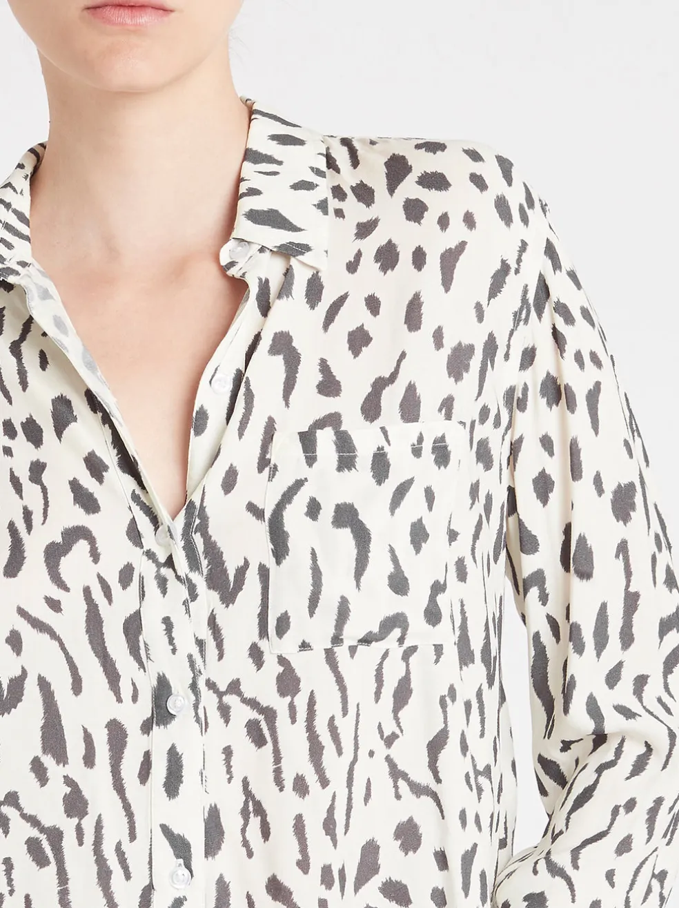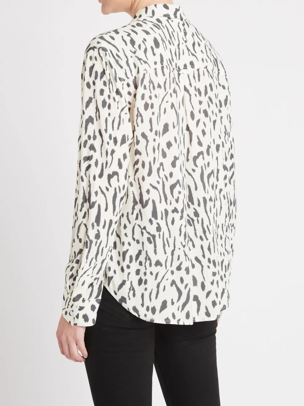 Express your inner wild with the Rails LA Rocsi Shirt in Ivory Cheetah this season. Crafted in their signature soft rayon, this super soft long sleeve features a classic collar, button down fastening with Ivory and Black Cheetah print and is finished with a single chest pocket. Pairs perfectly with denim or a trouser for the ultimate work to weekend style.