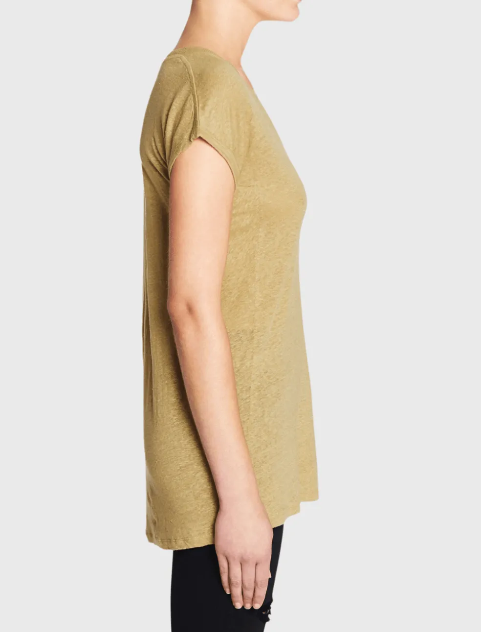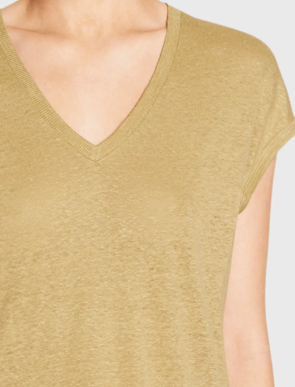 This Classic V-Neck tee from IRO features cap sleeves and is constructed in a soft khaki linen. Team the IRO Simza Tee in Snake with your favourite black denim for a casual look with a touch of military style.