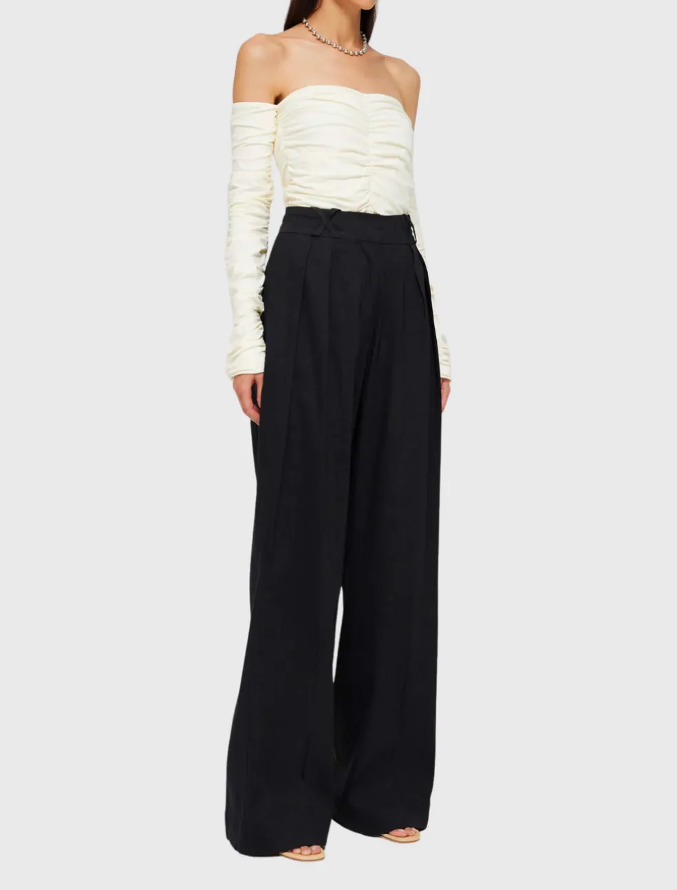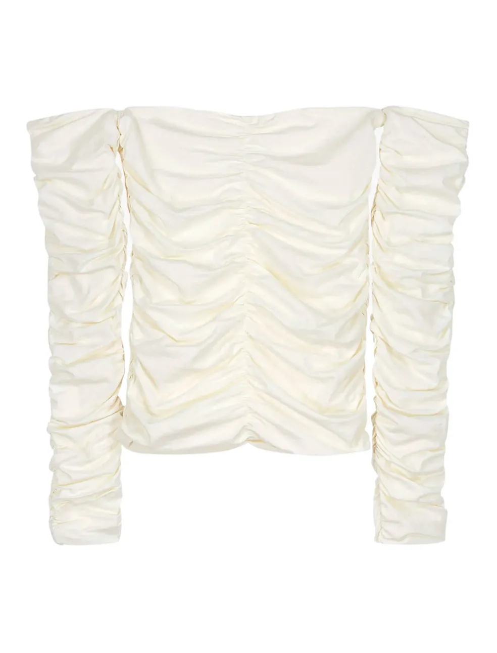 The RÓHE Smocked Off-Shoulder Top in Off-White is a delicate and on-trend addition to your wardrobe. With its off-the-shoulder smocked jersey stretch design, this bustier-style top features elegant ruching detail running vertically along the body and sleeves. Crafted from soft and stretchy organic cotton, it effortlessly combines comfort and style, making it a versatile piece that suits any occasion. Dress it up with tailored trousers for a sophisticated look or down with your favorite pair of jeans for a casual yet chic ensemble.