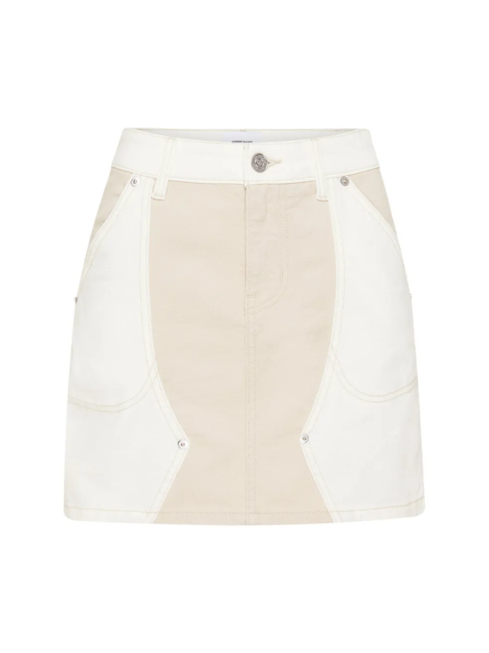 Level up your off-duty style with The Agatha Skirt in Oatmeal White by Current Elliott. Crafted from a mix of off-white and bright white denim, this mini skirt features a contrast panel construction and is finished with an A-line silhouette. Team with a worn vintage team and ankle boots for the perfect day to night look.